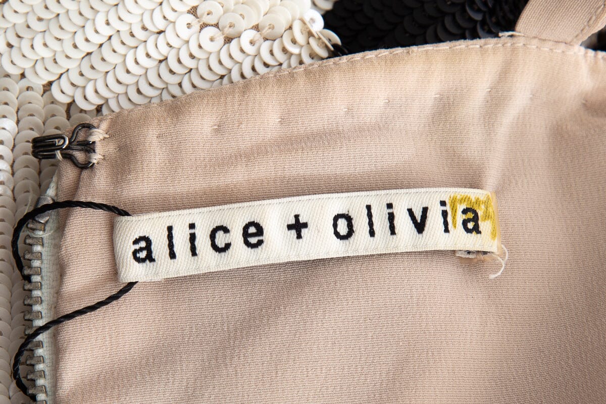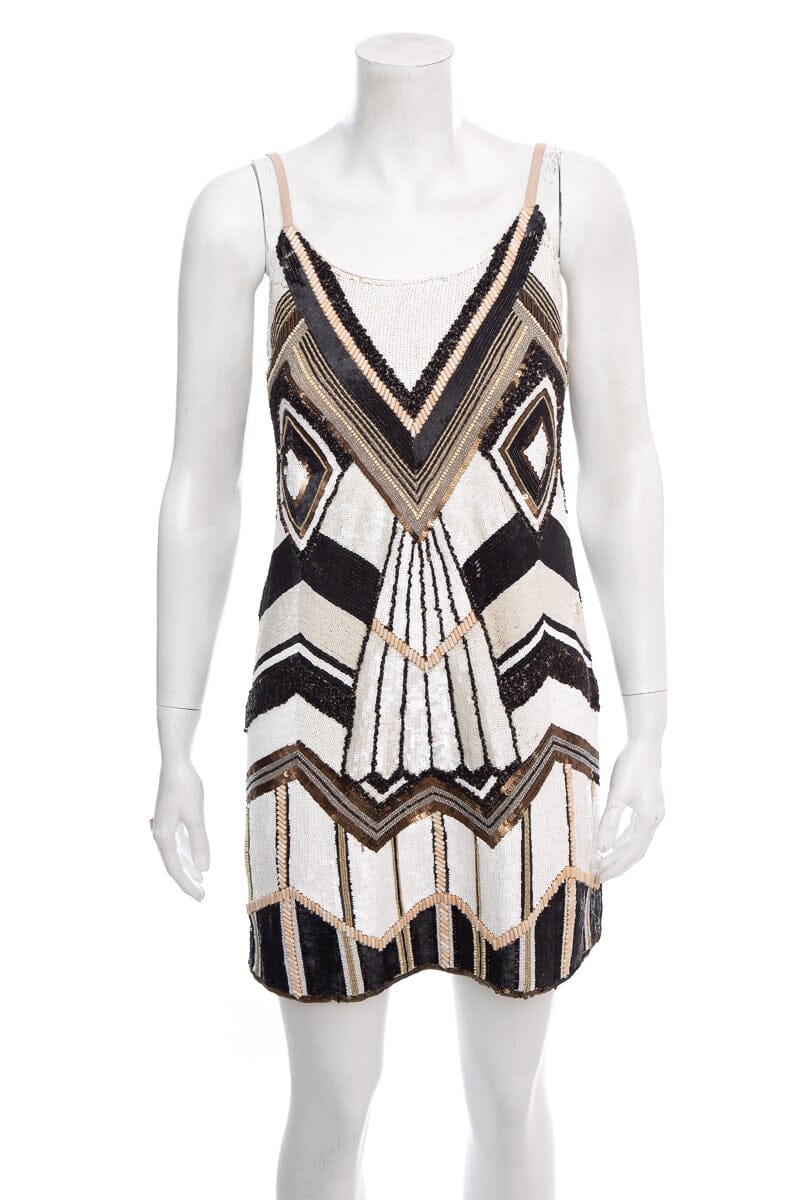 Alice + Olivia Brown and White Sequin and Beaded Sleeveless Dress SZ S