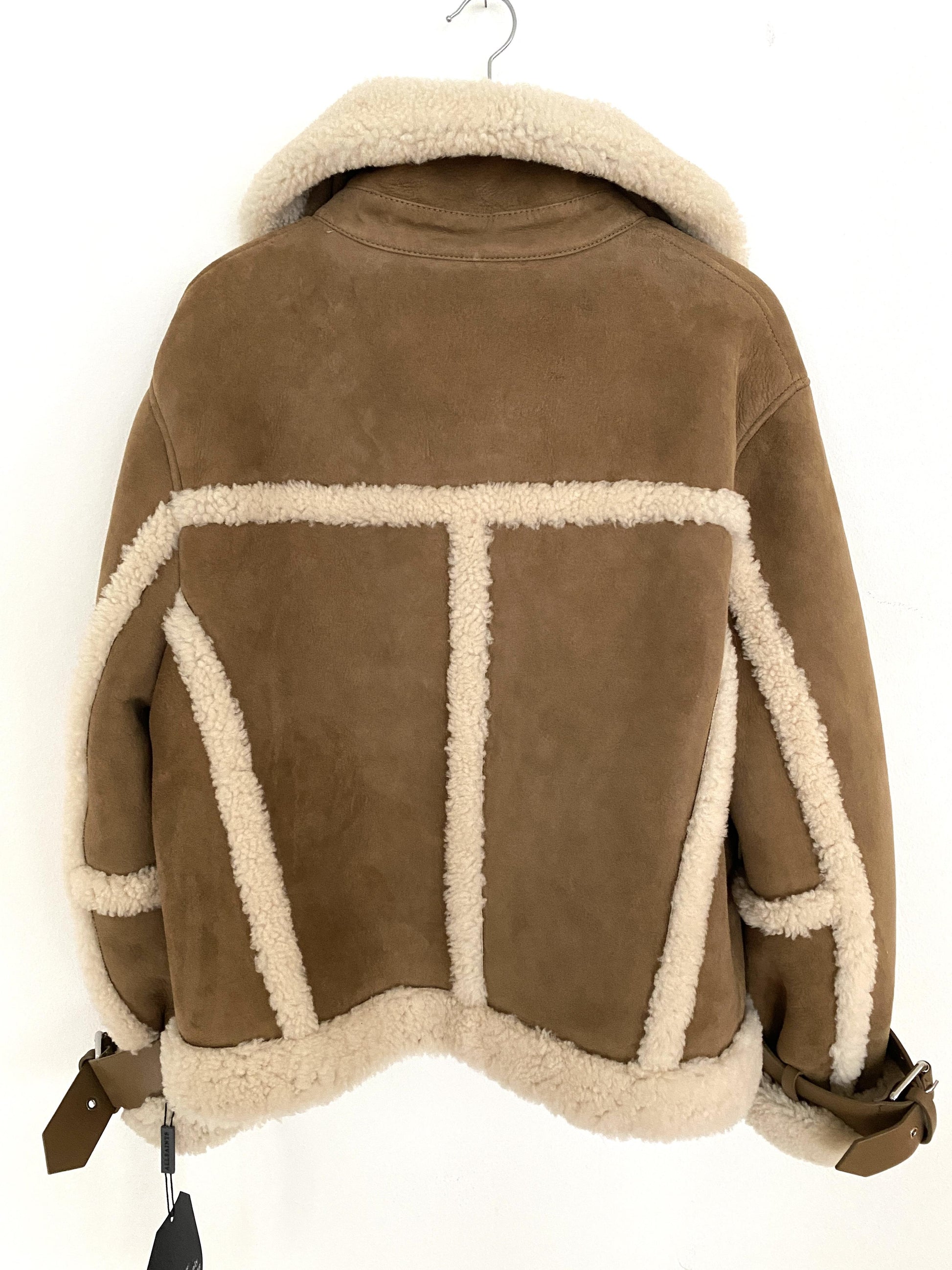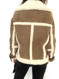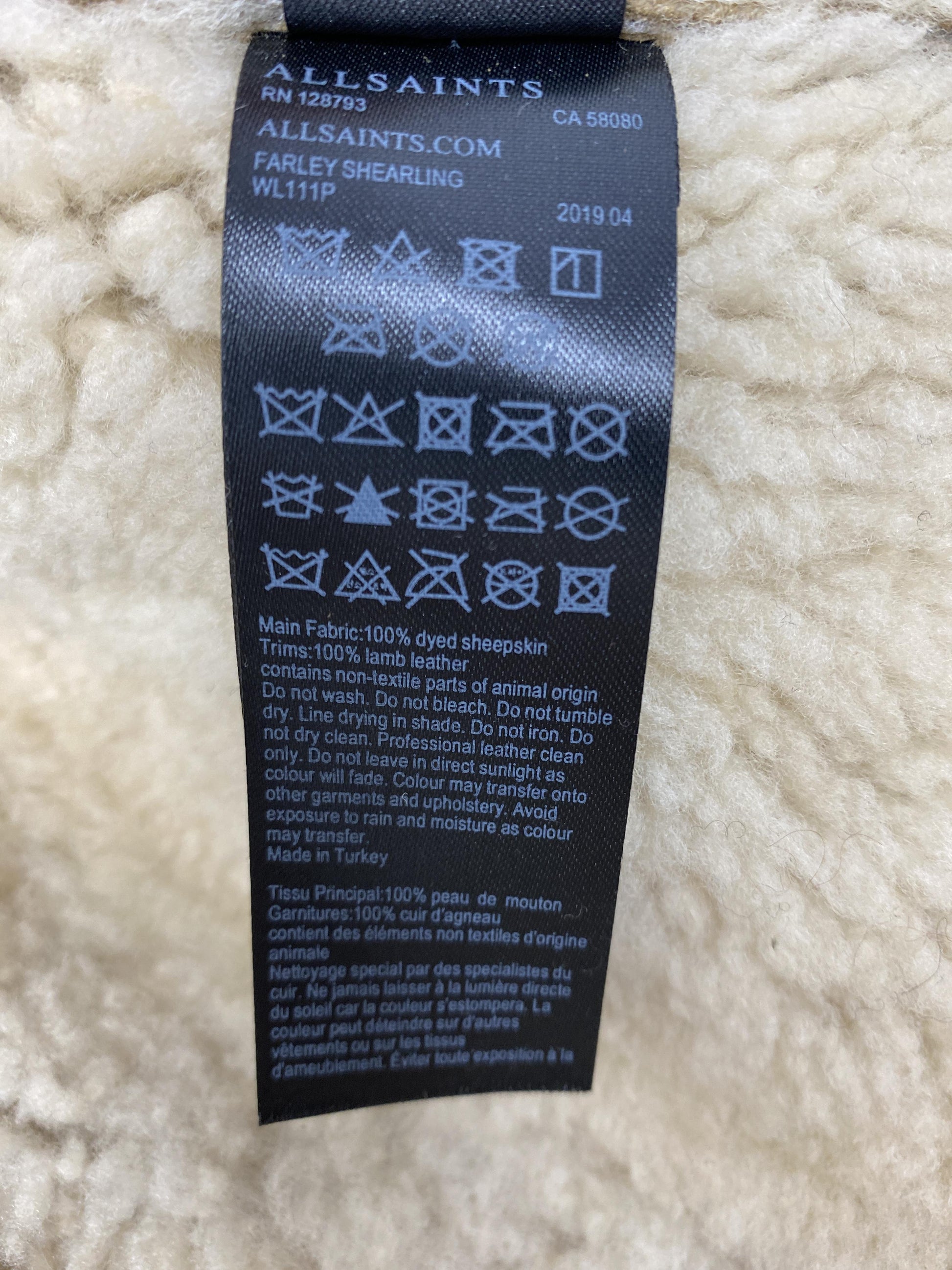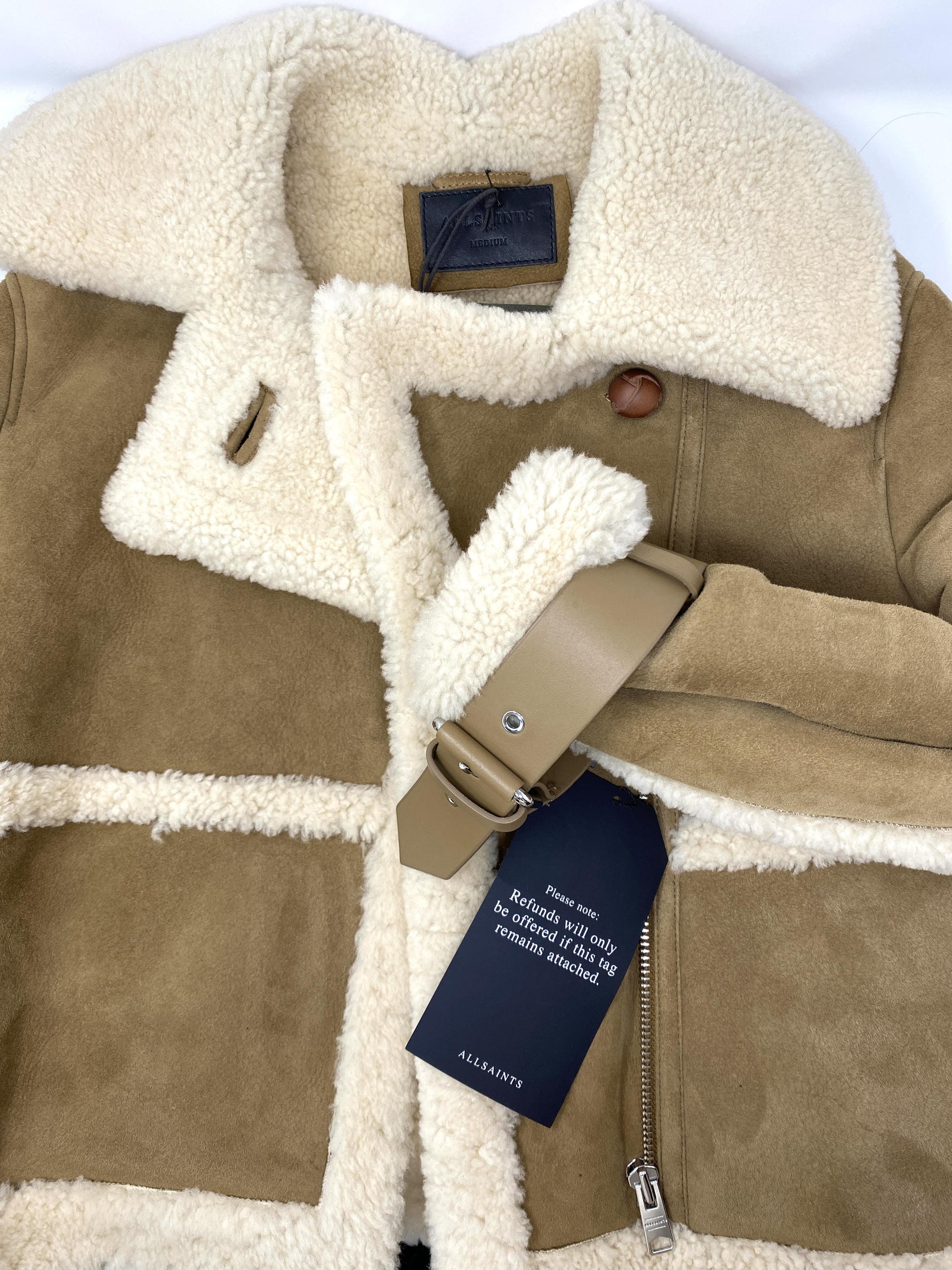 ALL SAINTS Farley Shearling Aviator Jacket in Brown/Ecru - Size M