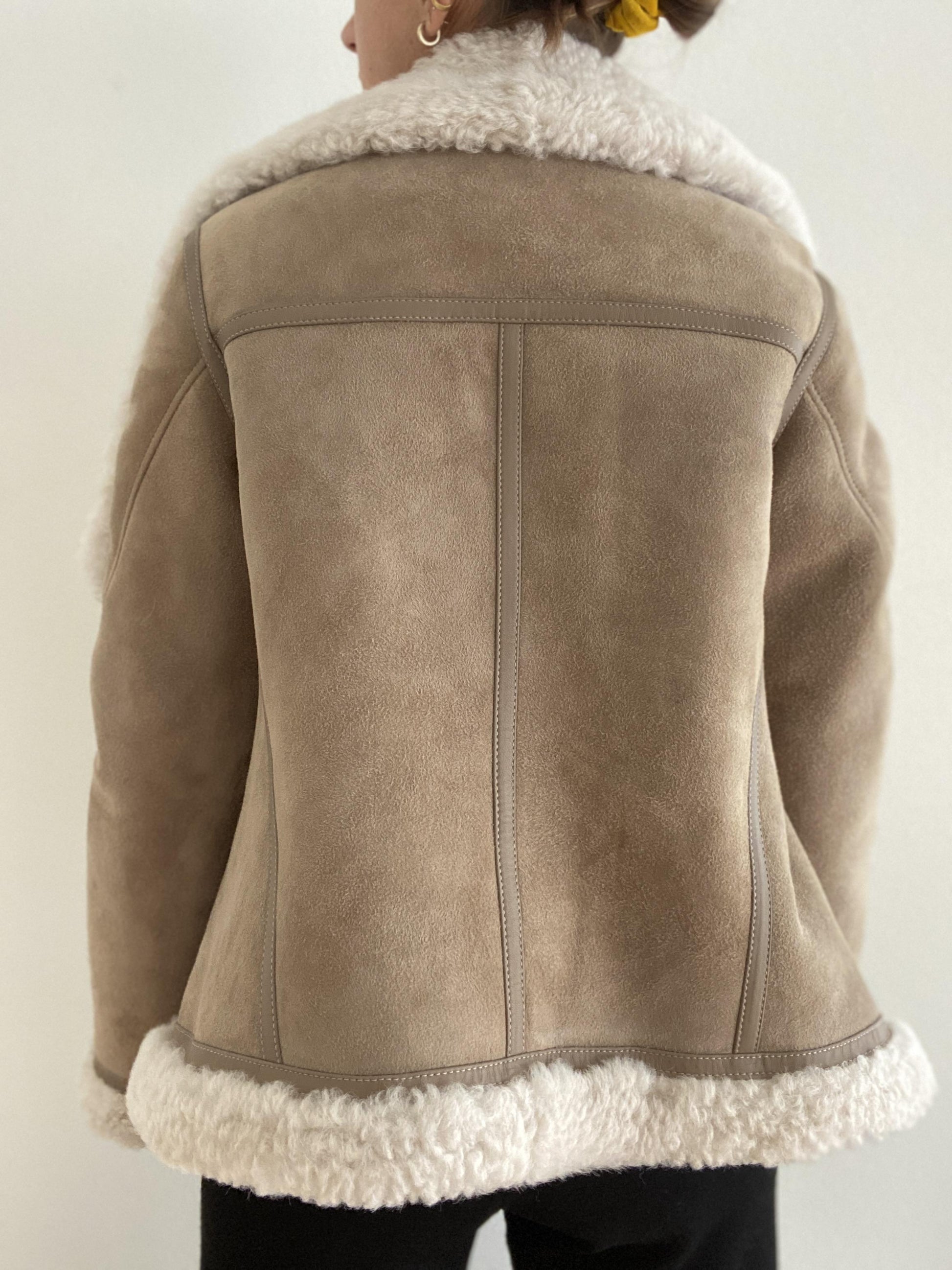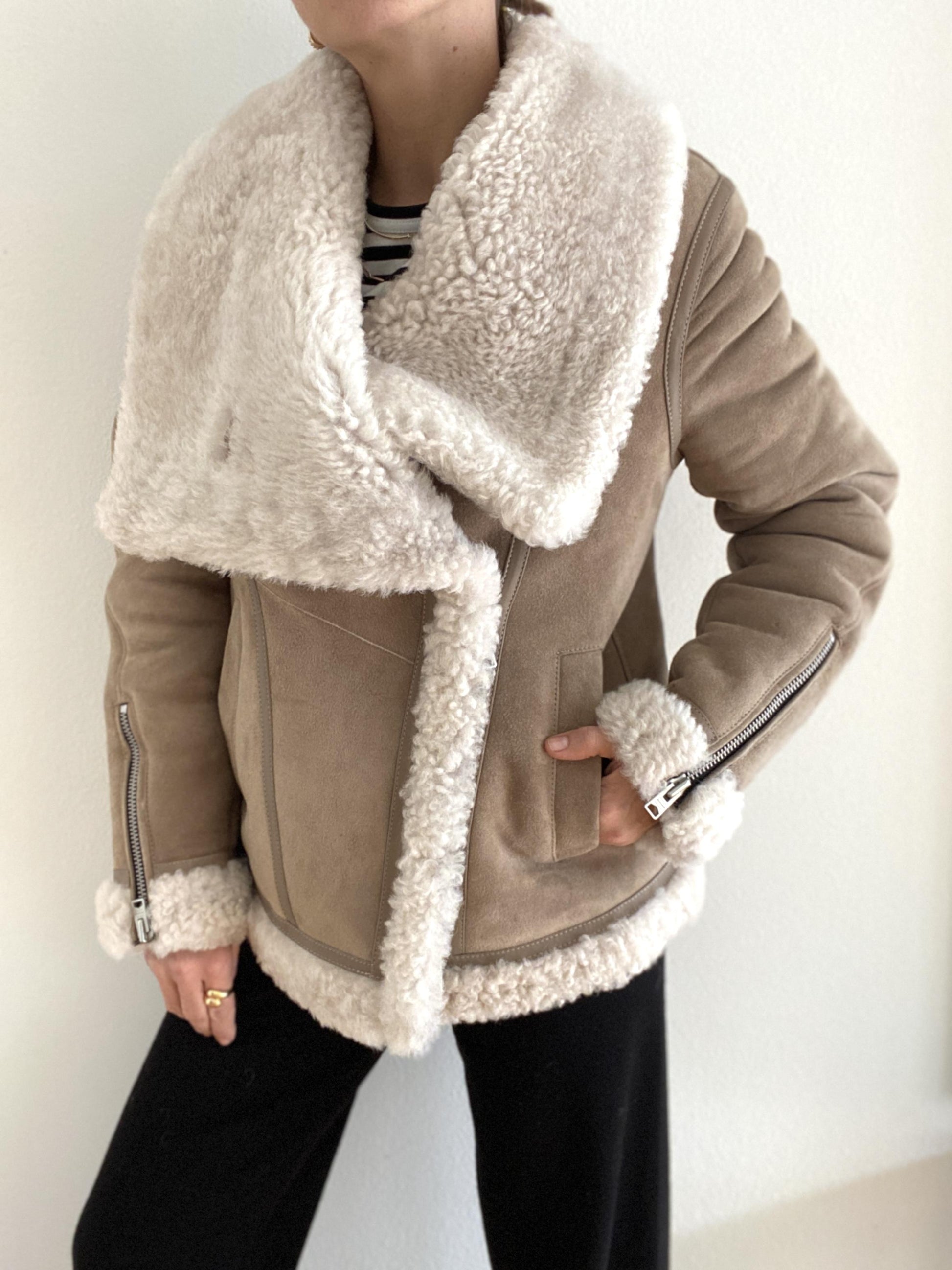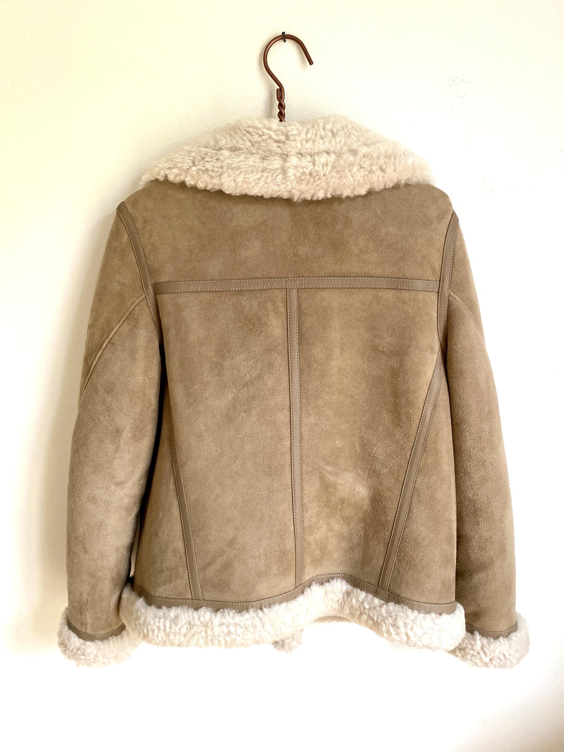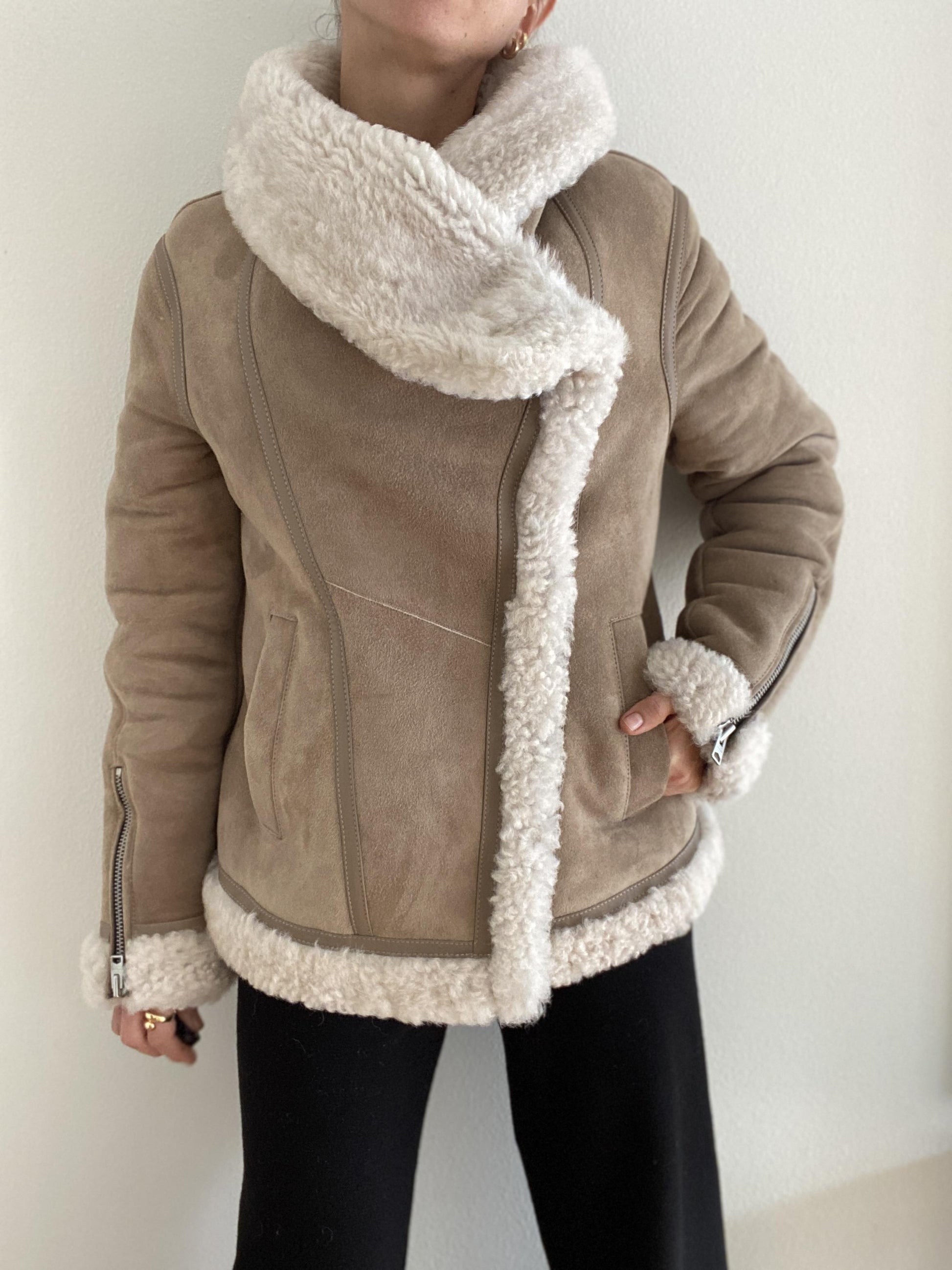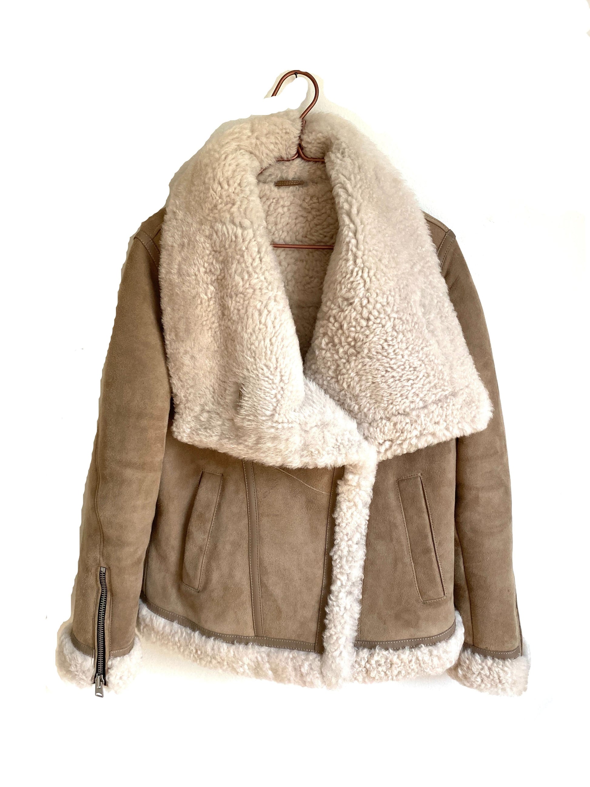 This All Saints aviator jacket is in impeccable state. It is a classic timeless wardrobe staple and sold out everywhere. The sheepskin outer and Icelandic merino shearling offer tactile softness and will keep you super warm on the windiest and coldest of days.