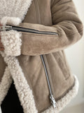 ALL SAINTS Harlow Shearling Aviator Jacket in Toffee/Ecru White