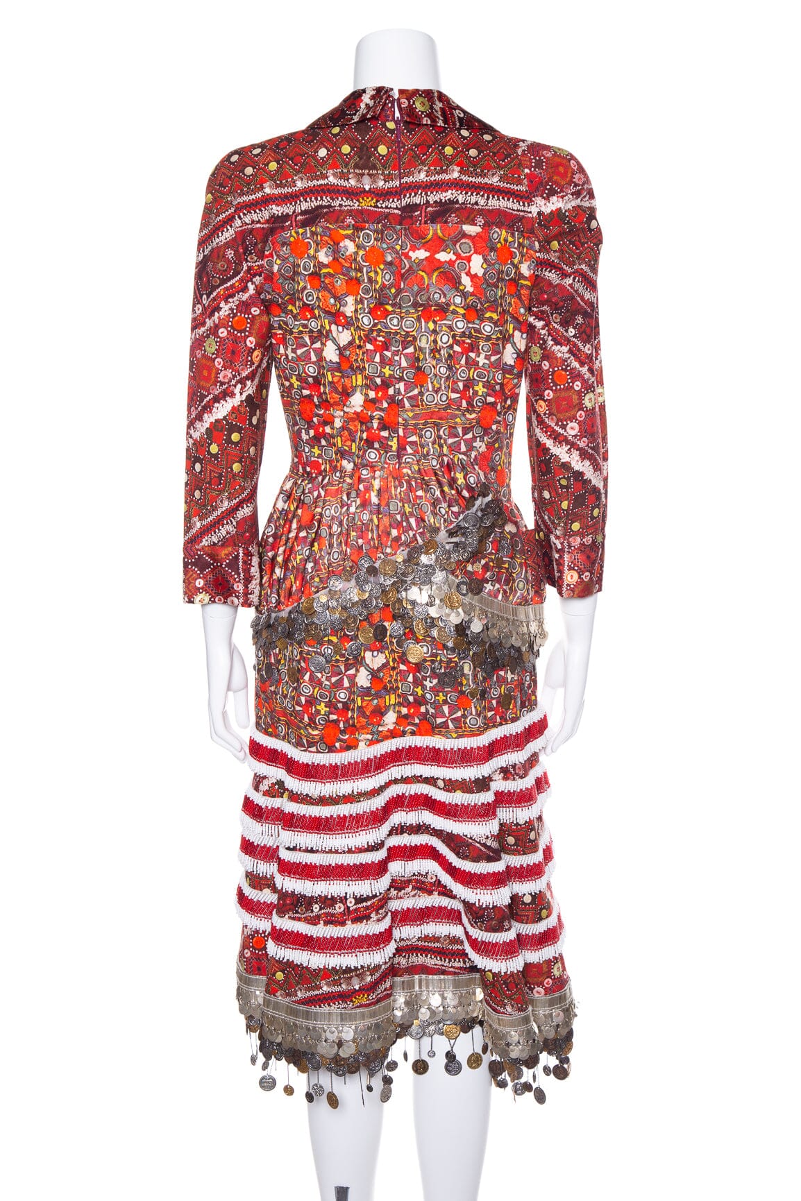 Altuzarra Red Multi Aztec Print Beaded Embellished Dress SZ 40