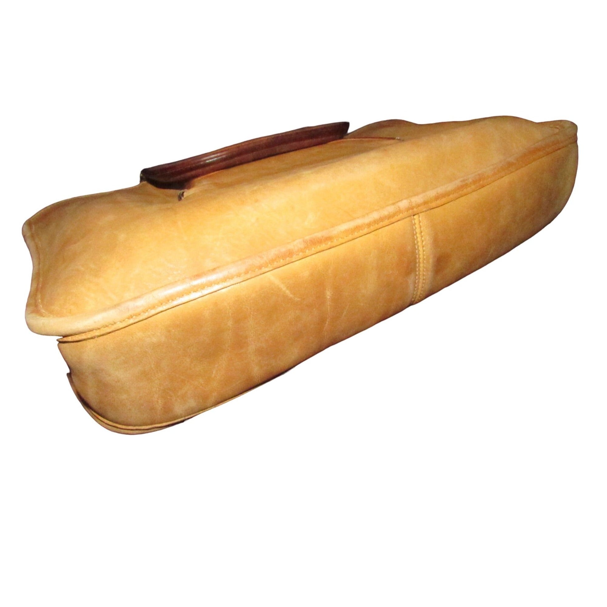 Inside, there is one main compartment and a multi-function pocket. The lining is tan raw leather and it is very clean- like it was never used! It has the Coach Creed patch embossed in the leather with a blank underneath for individual dealers to add the Coach No.#and its leather fob. This is the perfect laptop/ipad bag by Coach in mint vintage condition- Don't miss out!