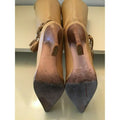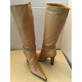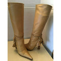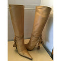 AMAZING pair of Versace, size EU 35.5, buttery soft tan leather boots with woven leather & gold bead accents, pointed toes, pull closures