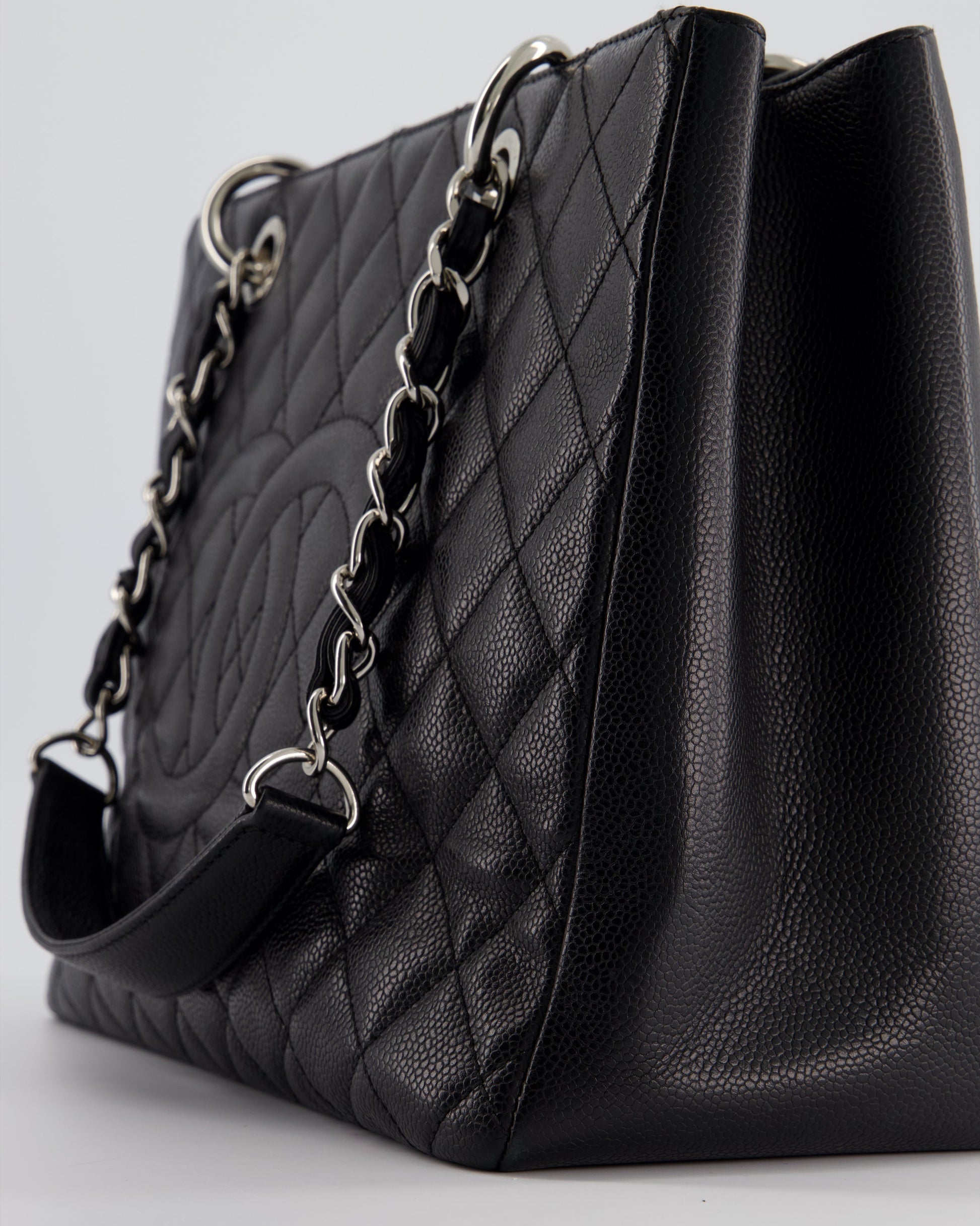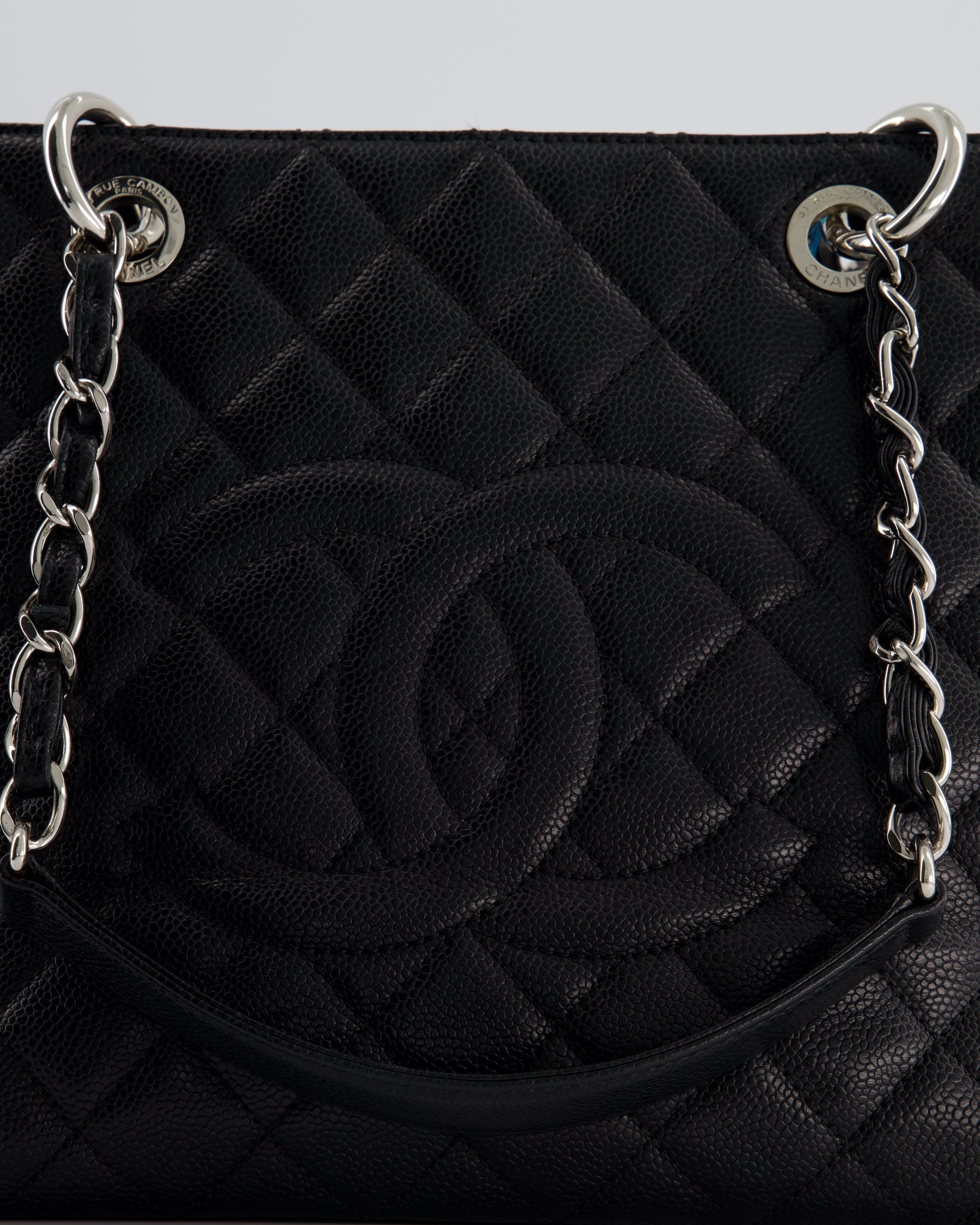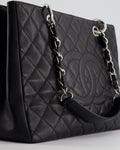 *AMAZING SHAPE* Chanel Black GST Grand Shopper Tote Bag in Caviar Leather with Silver Hardware