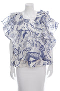 Andy Ho Blue/White Printed Blouse with Ruffles. This item is new with tags.