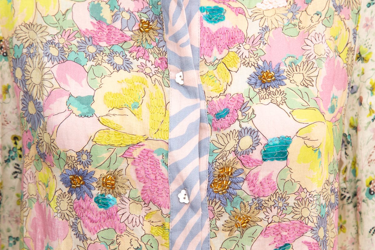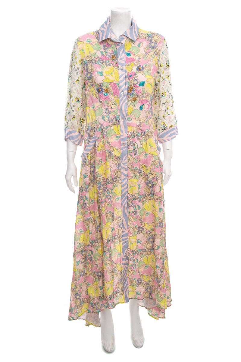 Anjuna Multicolor Linen Floral Maxi Button Up Dress. This item is new with tags.