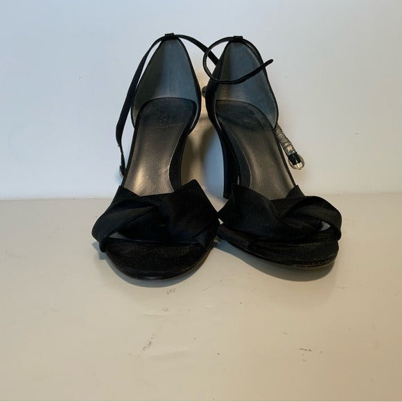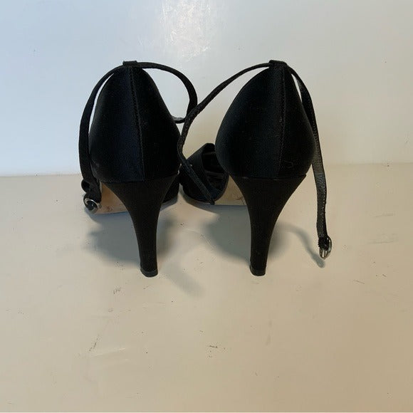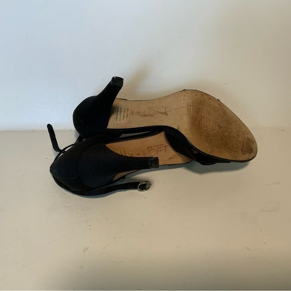 For sale is a pair of Ann Taylor LOFT Black Sateen D’orsay Ankle Strap Pumps.