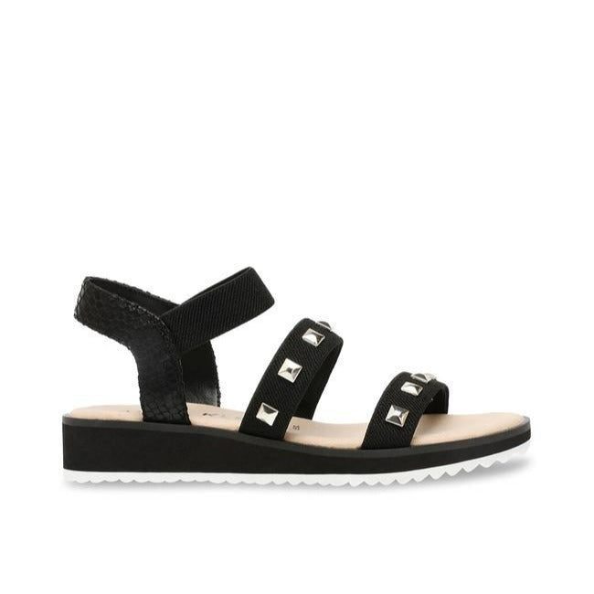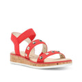 On trend! Anne Klein Red Marcelina Strappy Studded Wedge Sandal will be the 'X' factor in your fashion closet. Designed with sporty straps that bear striking pyramid studs, this flat form sandal has an iFlex technology that makes it bend up to 90 degrees. Fabric upper. Slip-on. Round open toe. Synthetic lining. 1 1/4 " cork wedge heel. Rubber sole. Imported. All measurements are approximate. J0701