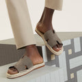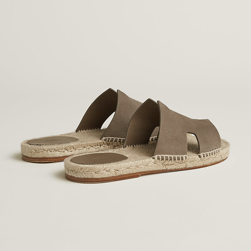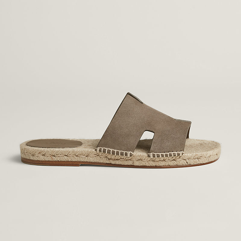 Espadrille in suede goatskin with rope sole and "H" cut-out.