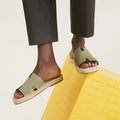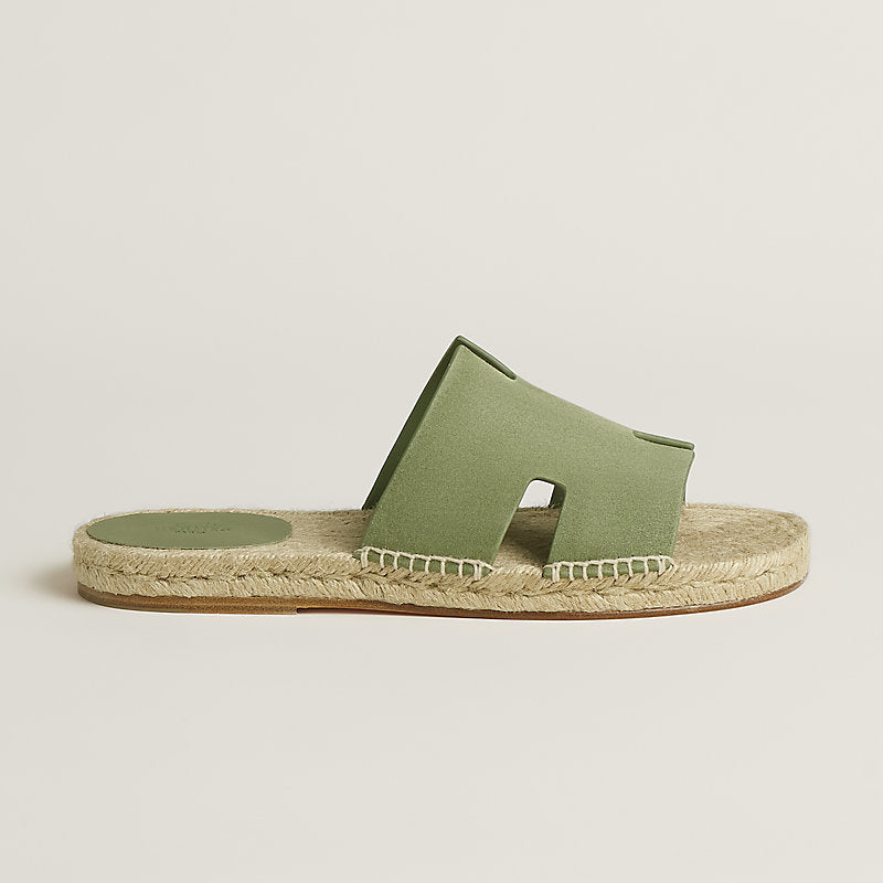 Espadrille in suede goatskin with rope sole and "H" cut-out.