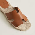 Espadrille in calfskin with rope sole and "H" cut-out.