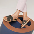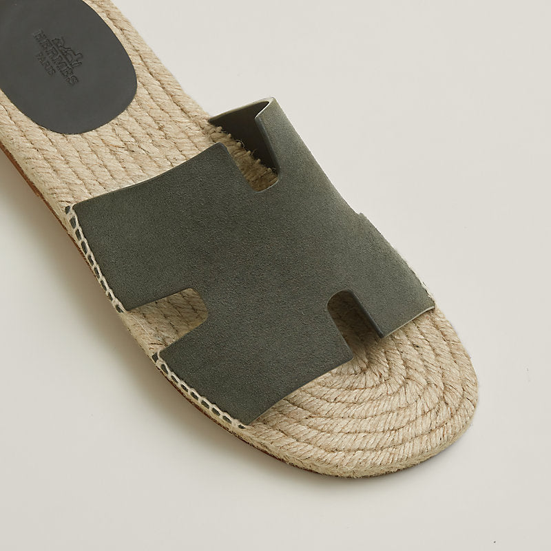 Espadrille in suede goatskin with rope sole and "H" cut-out.