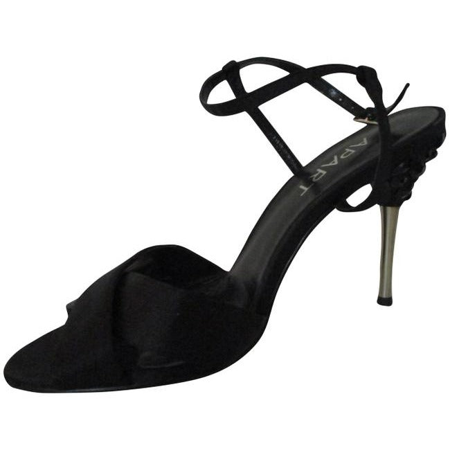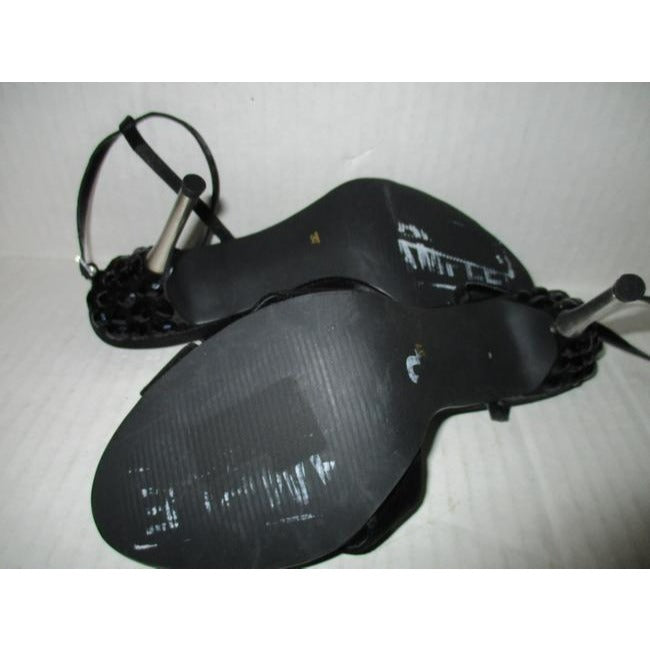 Apart Impressions Black Silver Metal Embellished Heel Open Toe Pump Sandals Size Eu