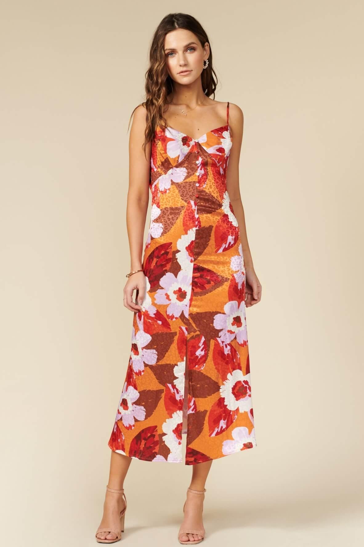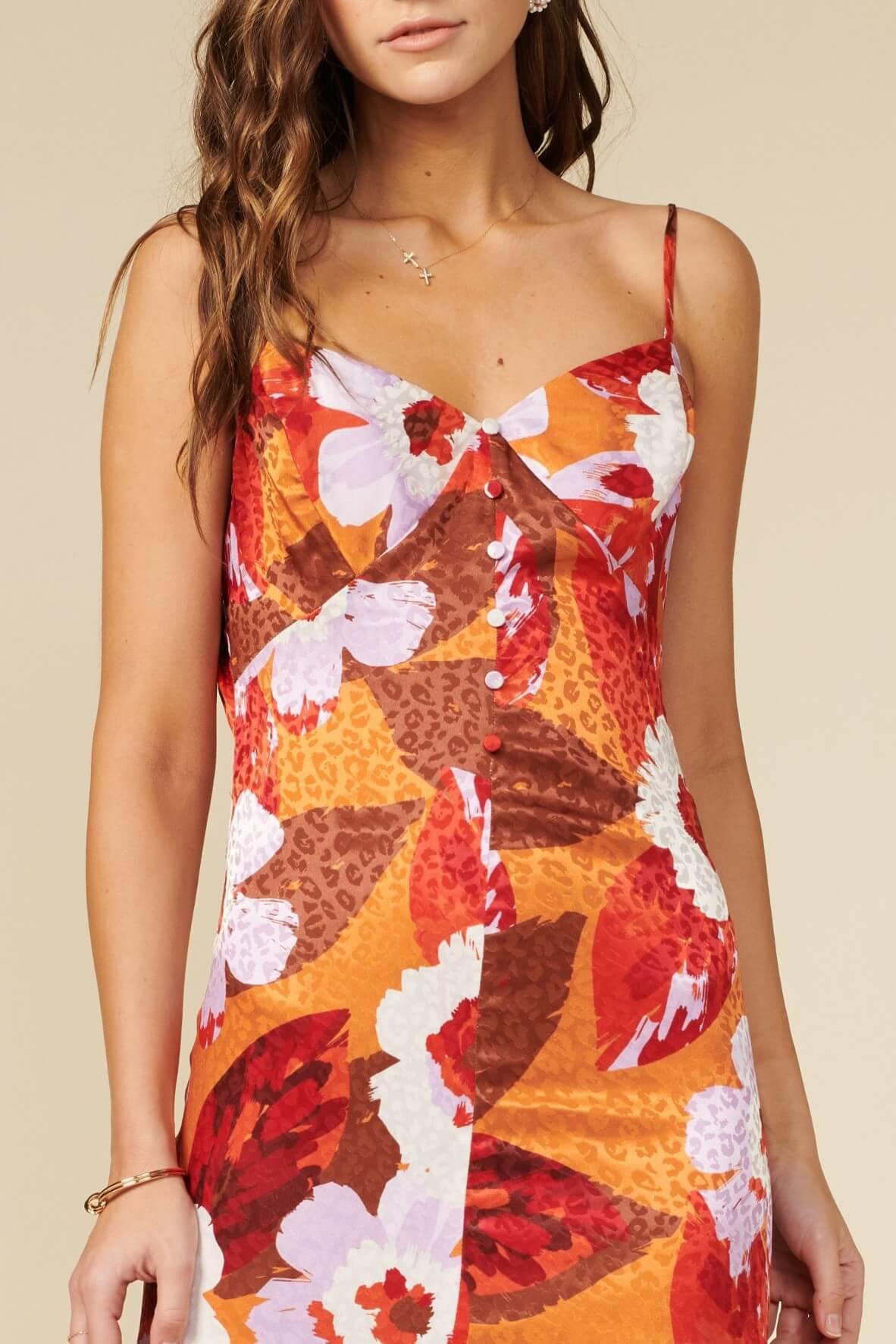 Satin Floral cami dress with slit at front hem