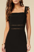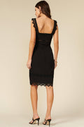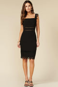 Peekaboo lace details make this dress versatile enough to go from a candlelit dinner to a night of dancing.
