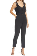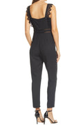 Peekaboo lace details make this elegant sleeveless jumpsuit versatile enough to go from a candlelit dinner to a night of dancing.