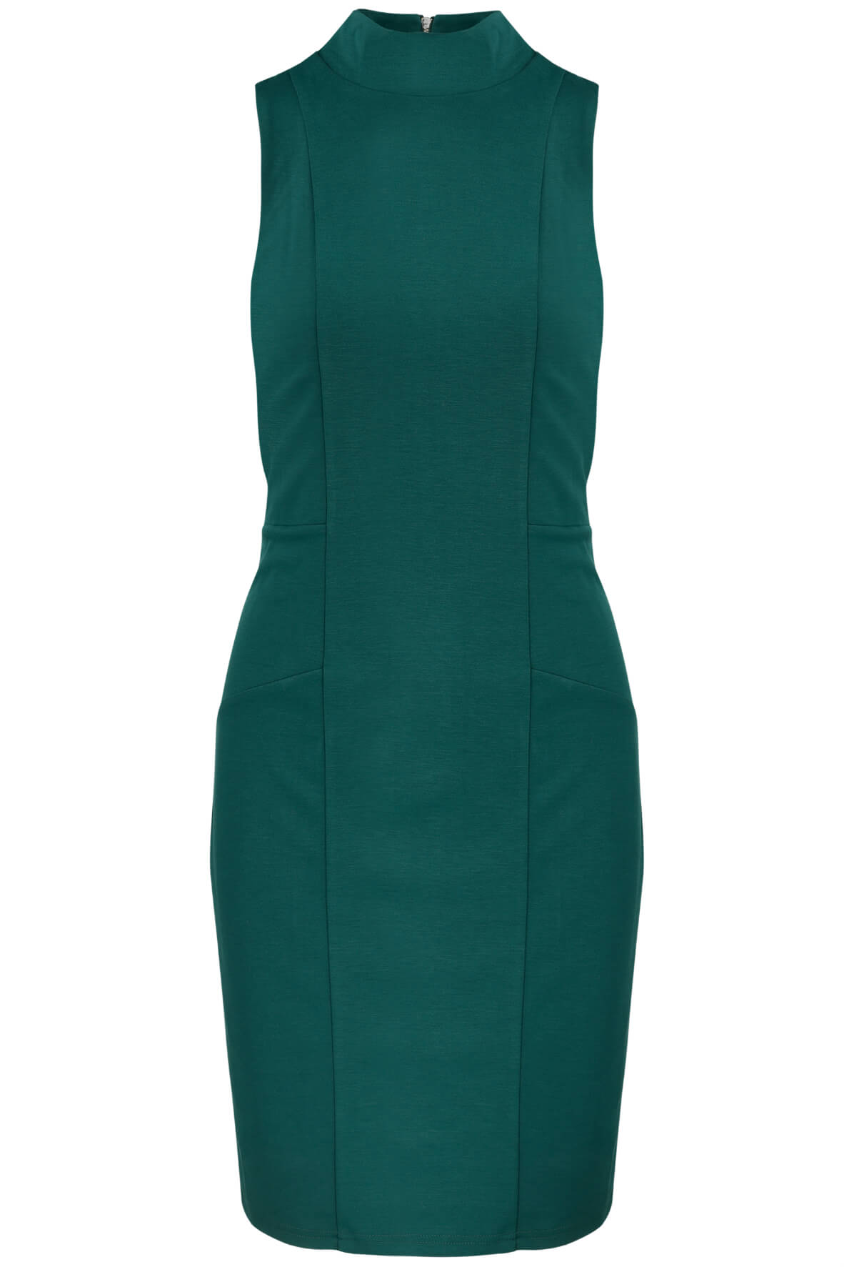 The Ali & Jay Have It All Sheath is a sleeveless fitted ponte knit dress that features mock neck detail and zip back closure. Model is 175cm tall, wearing size S.