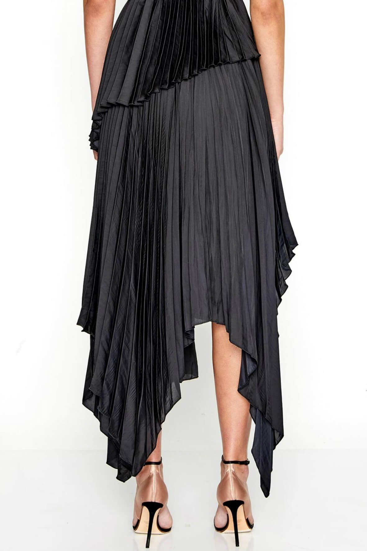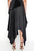 This asymmetrical skirt features an elasticated waistband, a pleated design and is a unique take on the traditional black skirt. Wear it out to paint the town red!