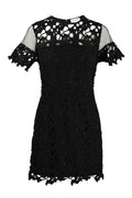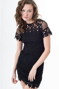 A sweet lace number featuring an embroidered lace throughout with a crewneck design. With tonal topstitching and panel seaming finished with a concealed back zip closure. Fully lined.