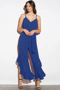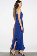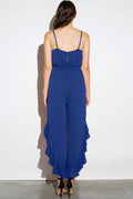 Stay fancy in this sapphire coloured Hal Jumpsuit with adjustable straps and frills at the ankles.