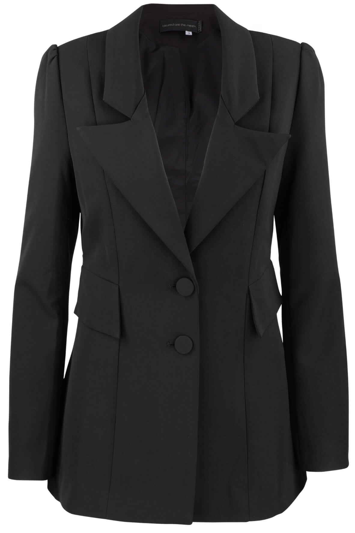 A classic blazer in a tailored fit, this Prophet Blazer from Blessed mixes crisp black and smart tailoring. It features a double button front, fitted sleeves and a slightly elongated silhouette that will take you from desk to dinner with ease.