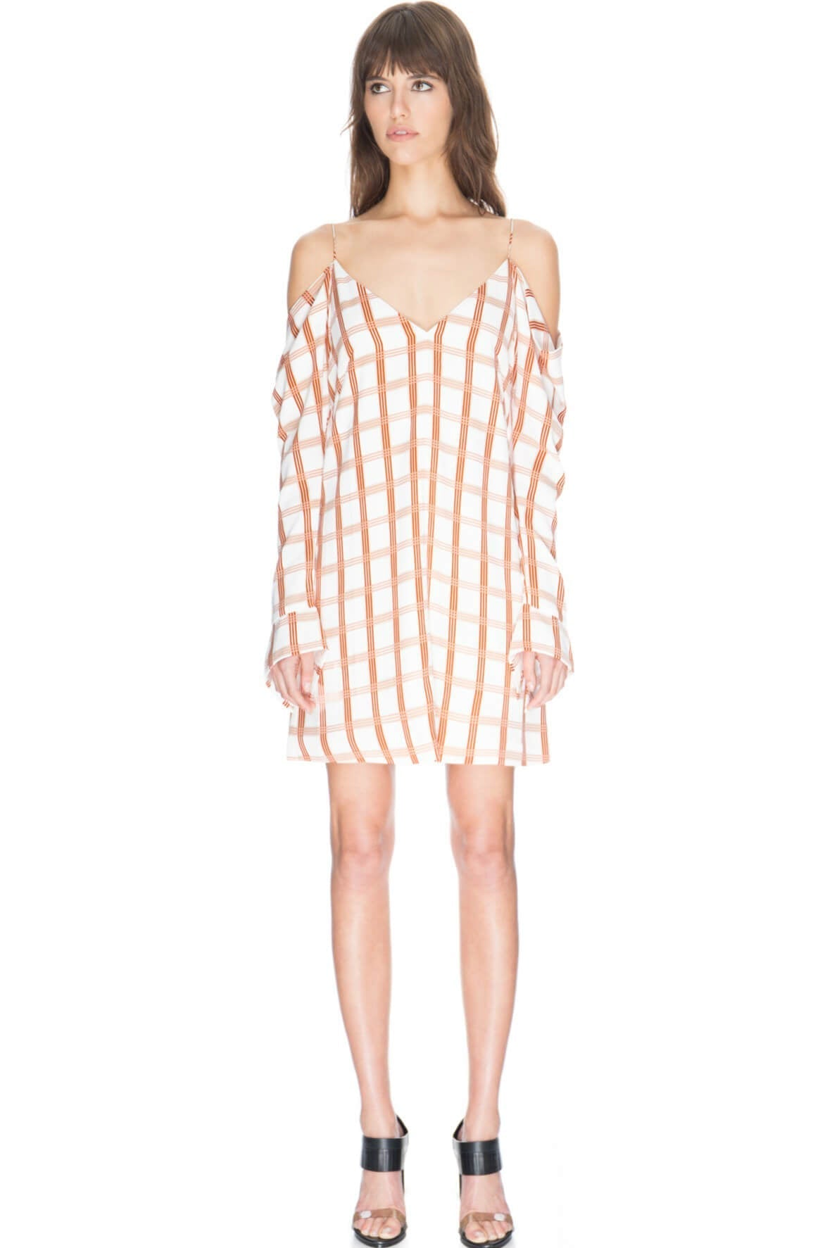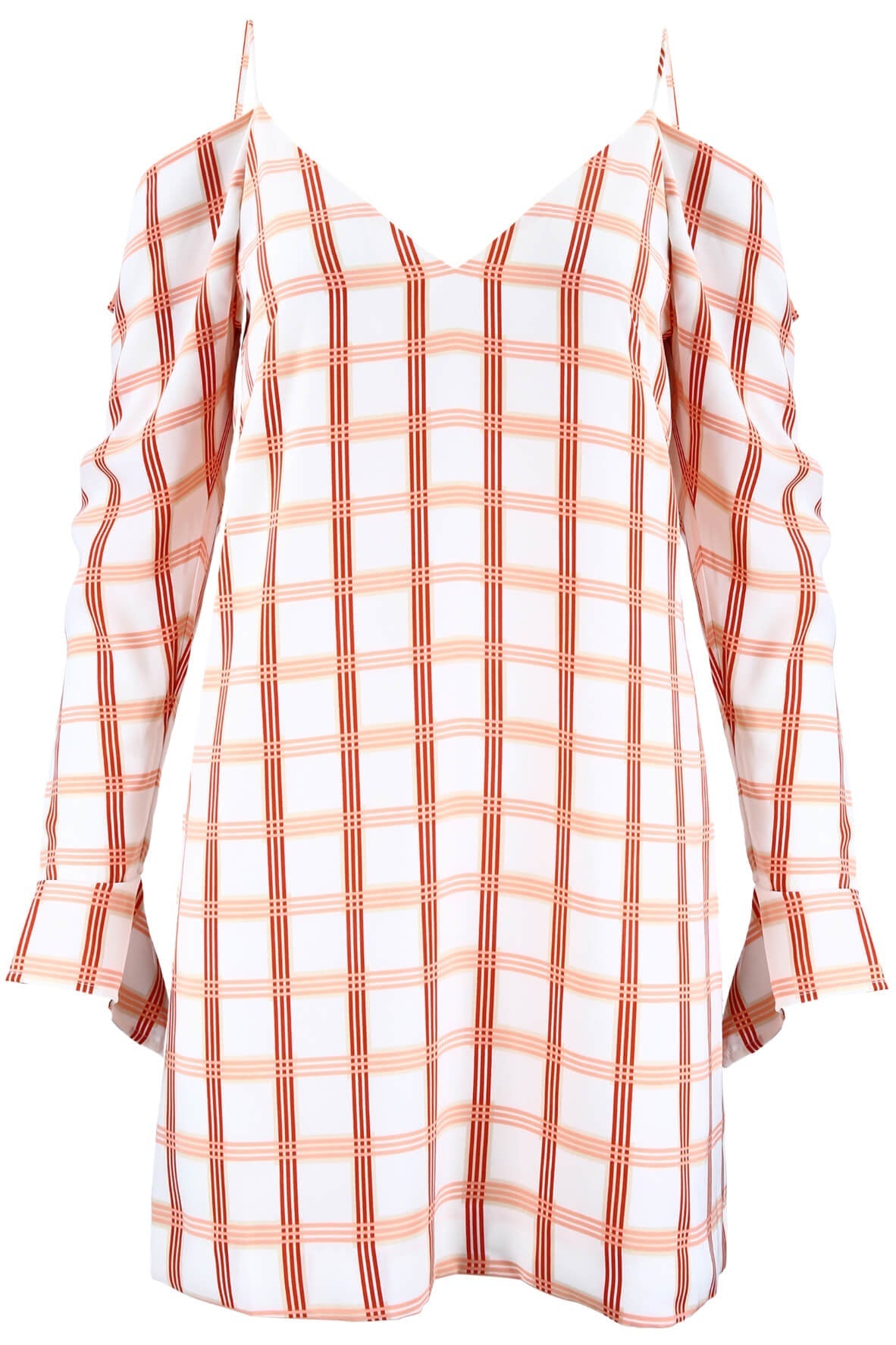 The Cold Shoulder Check Dress is the perfect weekend staple with its relaxed silhouette, off-the-shoulder sleeves and Check print. Pair with Espadrilles or lace up sandals and you'll be ready for a picnic date or a walk in botanic gardens. Nude undergarment is advised.