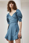 C/meo Collective Lift Me Dress is a statement mini and the perfect party dress for the festive season. Features wrap style v neckline with gathered fabric, cinched in waist and a concealed back zip closure. Finished with voluminous short sleeve with elasticised shoulder and flared skirt with frill trim. Model is 173cm tall, wearing size S.