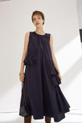 Modern day time dressing is re-imagined in the Etta dress by Caara. Breezy and chic, it features a pleated neckline and a ruffle detail on the front. This sleeveless maxi dress is a perfect companion for your travel stories.