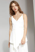 V-neck top in a flattering fit and flare design that comes with a detachable waist tie to further accentuate the waist. Nude undergarment is advised.