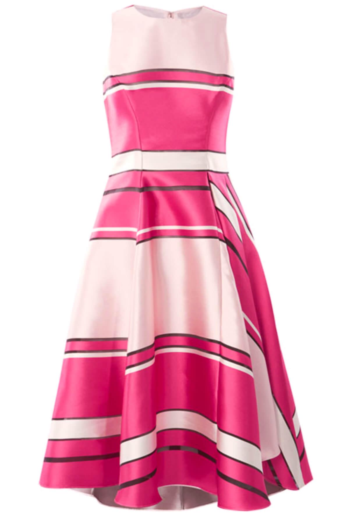 This beautiful pink stripe dip hem dress is perfect for special occasions. Pair with a heel for a classy evening look.