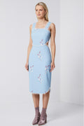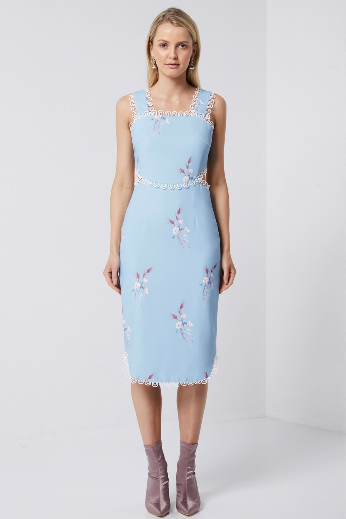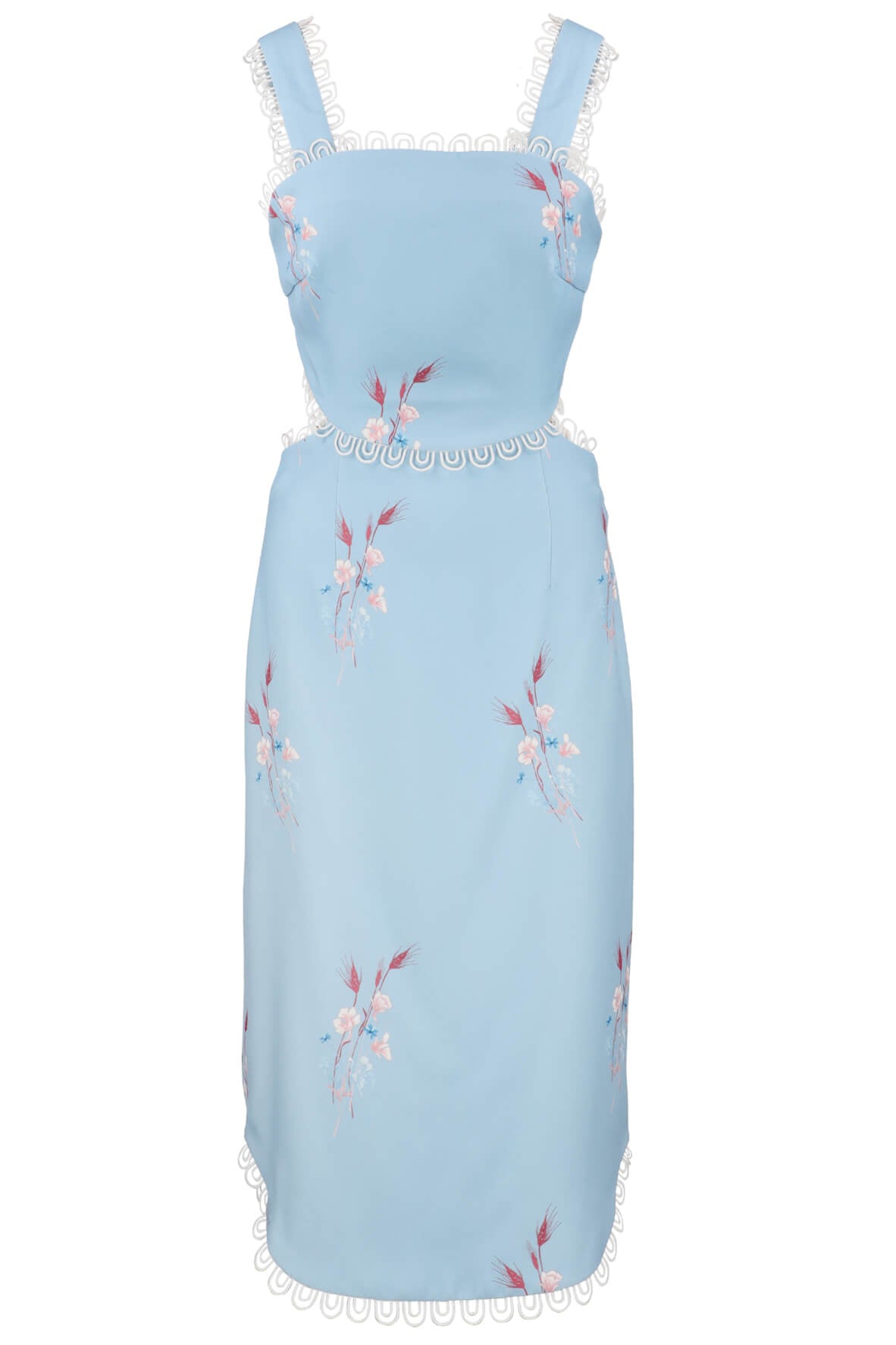 This midi dress has an exclusive centre back cut-out accompanied by its non-clustered all over floral prints. Model is wearing size S.