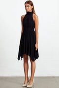 This unconventional take on the classic little black dress features pleated detailing and a cinched waist. Wear it out for your next dinner or even transition this piece from day to night.
