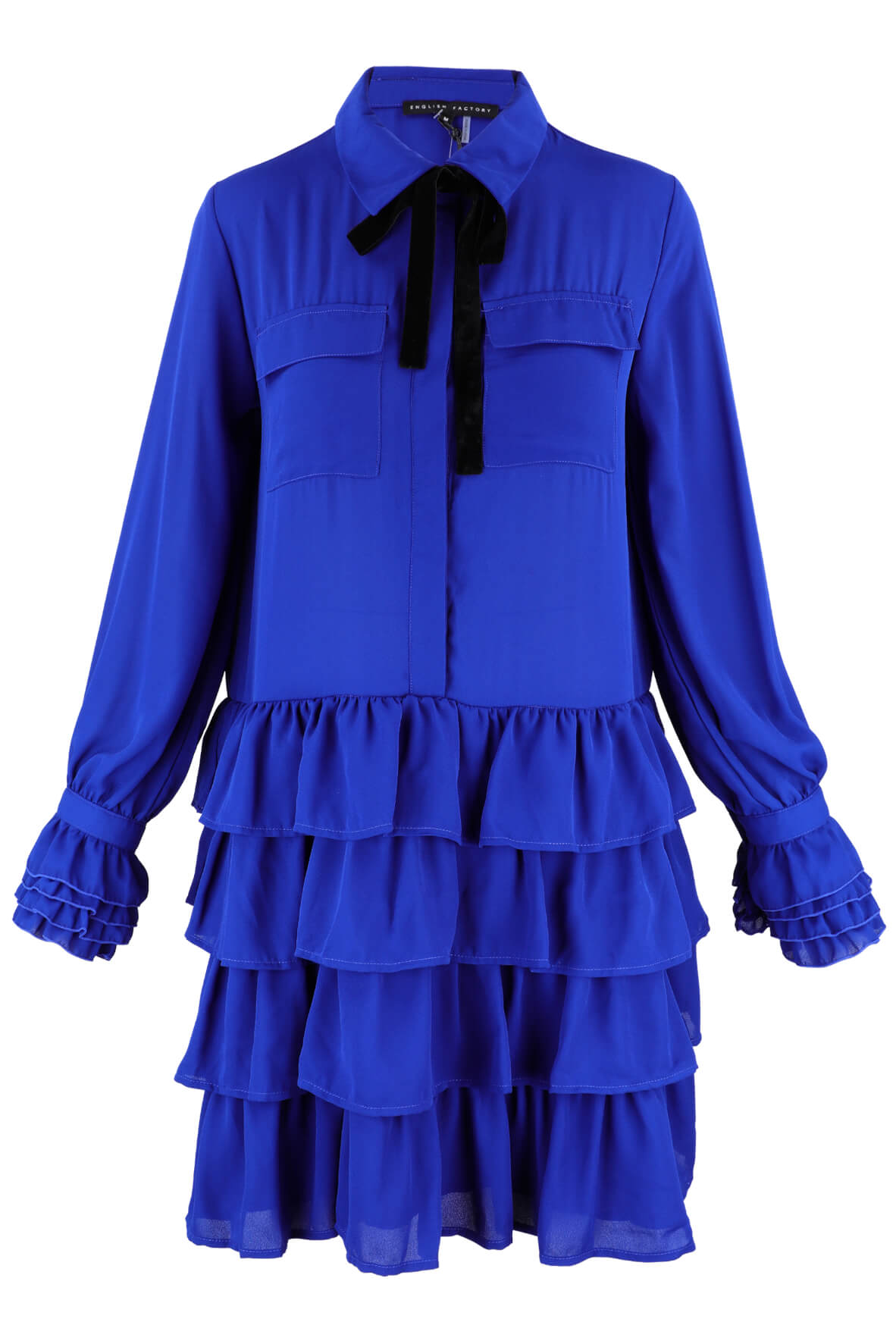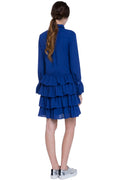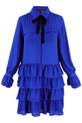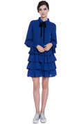 Preppy and girly, this dress features a tiered skirt, statement sleeves and a ribbon bow at the collar.