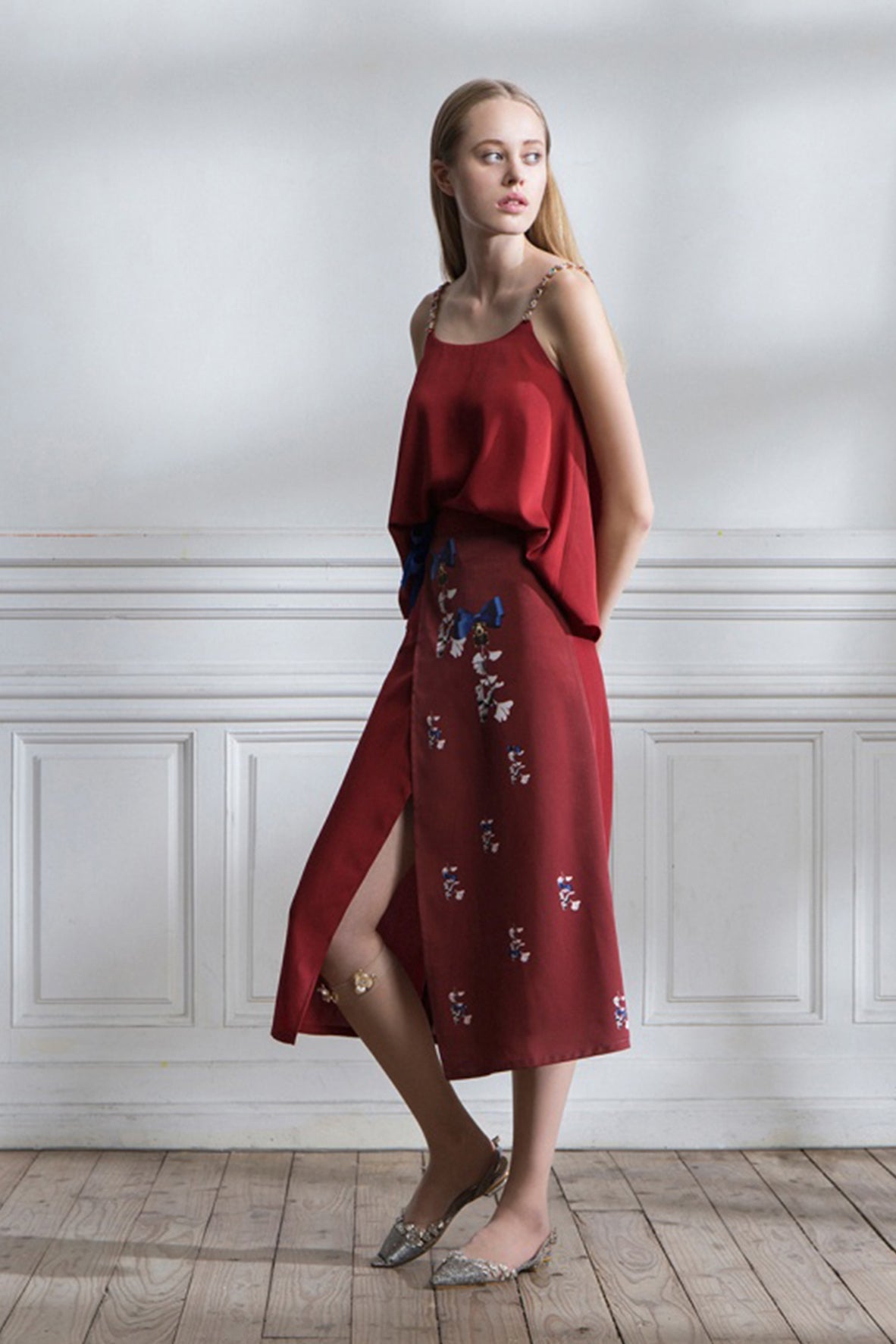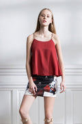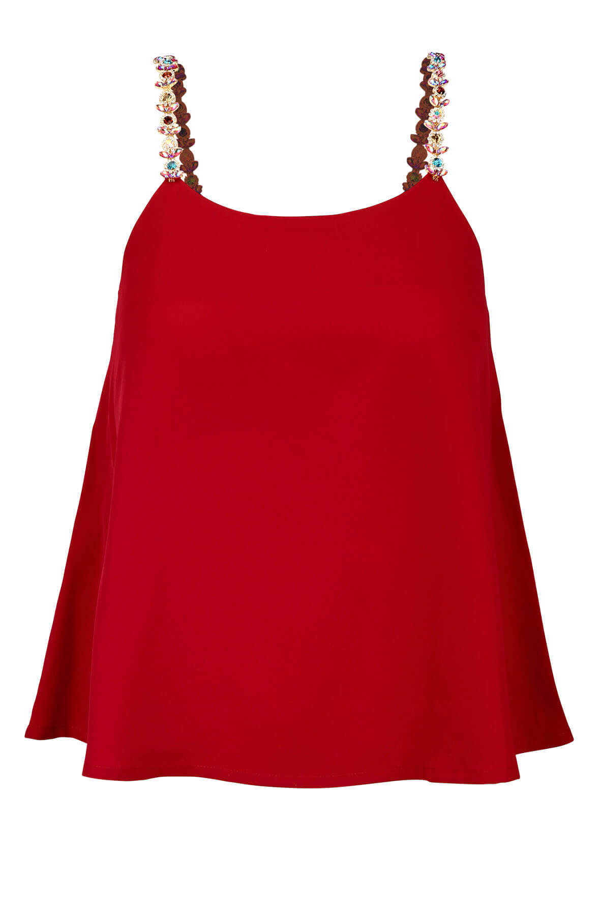 The Burgundy Jewelry Strap Top features a rich burgundy swing top with jewelled straps. This top is perfect for dressing up or dressing down, pair this top with a split front midi skirt or the venomous villain maxi skirt heels for a night out.