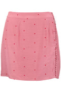 The Rosie Dot Mini Skirt is sweet and simple. Designed with a polka dot print, this mini skirt features button detailing, a front slit detail and high waisted fit. It has an invisible zipper at the side. Model is 178cm tall, wearing size S.