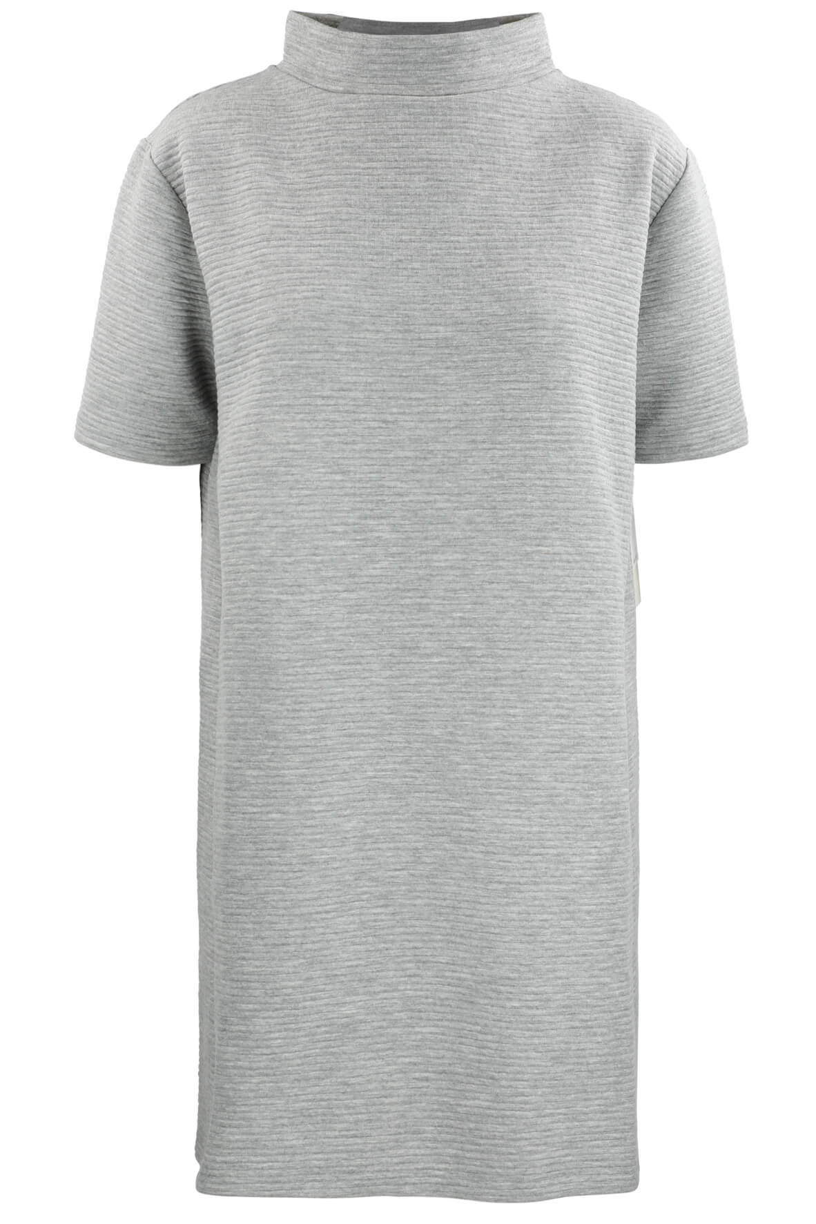 Structural lines and a ribbed knit give this trending boxy silhouette from French Connection a modern look that makes a statement at any occasion. Featuring a high neckline, short sleeves and cuts above the knee.