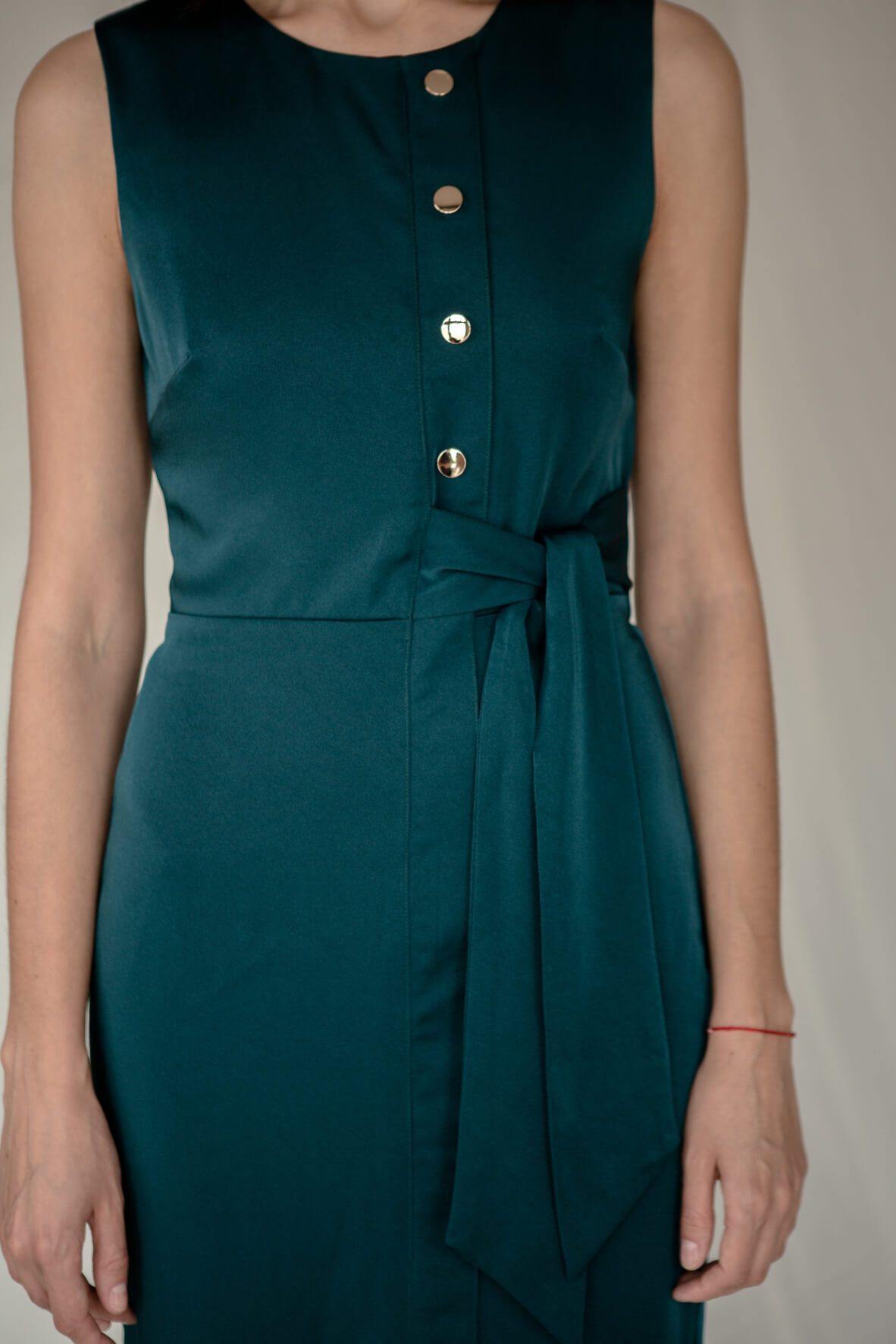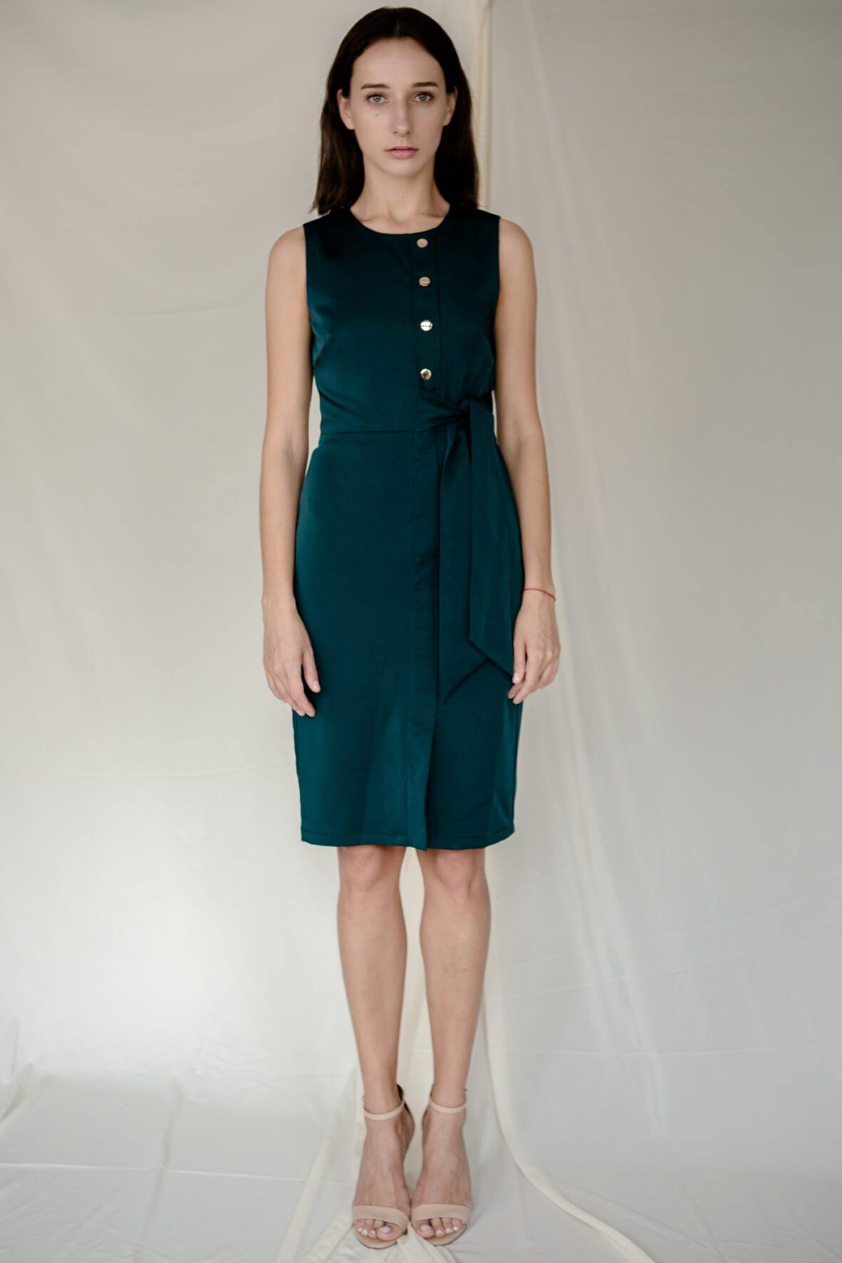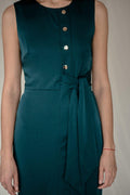 Shift Dress with self-tie sash detail on bodice, panel slit opening and back zipper.