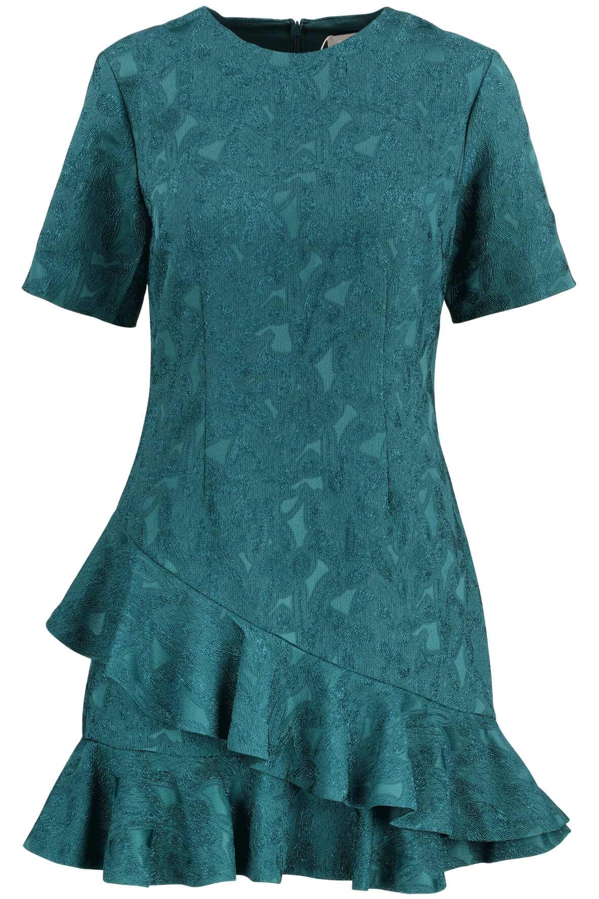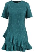 This mini dress by keepsake has half sleeves, ruffled hem details and textured floral jacquard pattern all over. Wear contrasting statement earrings and you are ready to rock the event.
