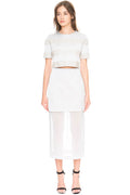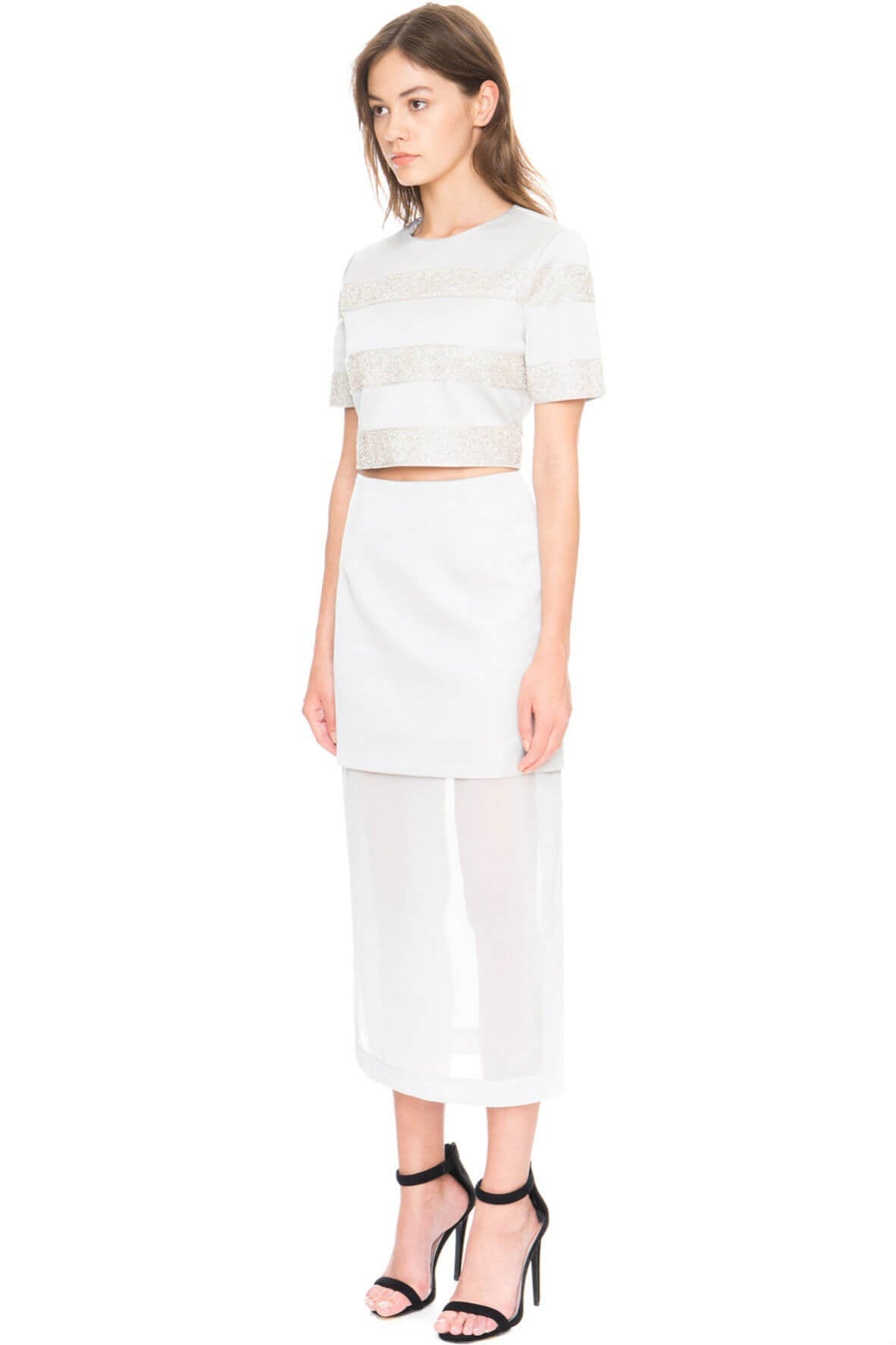Can't decide if you want to go with a mini or maxi? Spice up your average skirt selection with this ultra chic piece from Aussie label, Keepsake. The northern Lights Skirt is a high-waisted skirt with a fitted mini skirt overlay in a mid-weight satin fabric with an underlay panel that falls to the mid-calf with side splits in a soft sheer fabric.