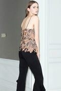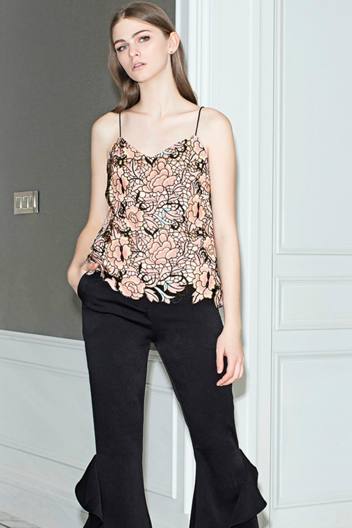 A nude colored camisole with a multicoloured lace accent updates the design. Pair this versatile top with career or weekend wear for a sophisticated look.