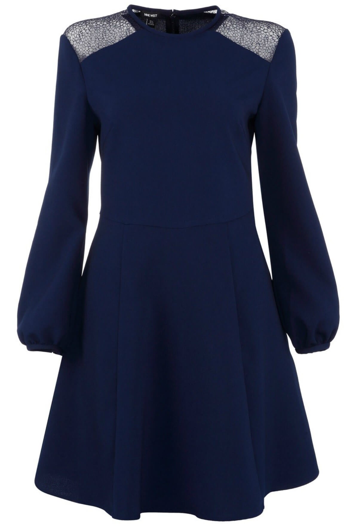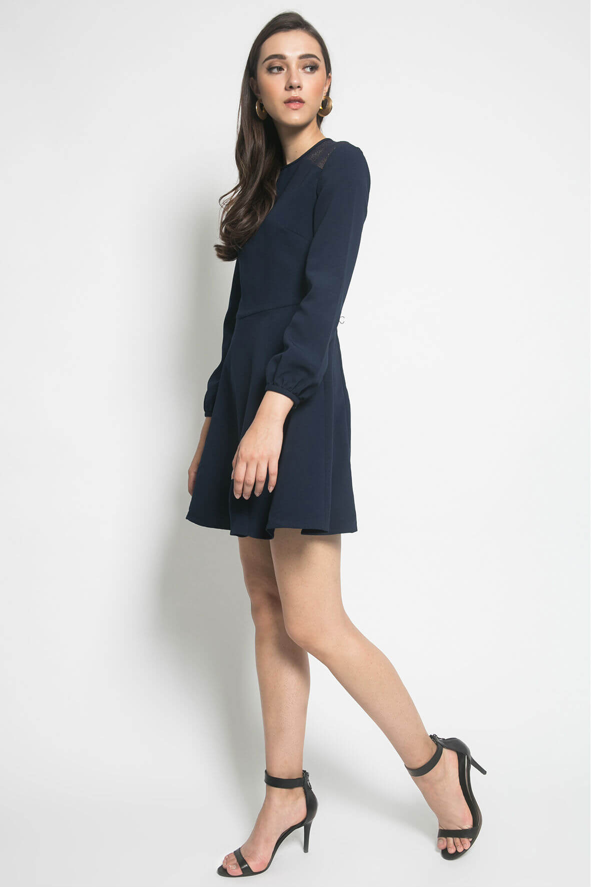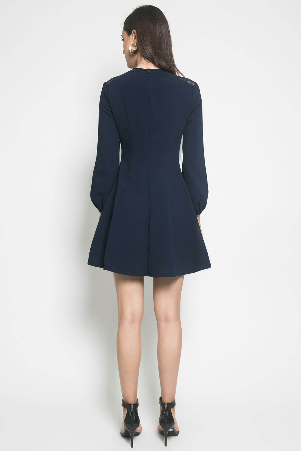 The Lace Panel Belted Bell-Sleeve Dress is the one perfect one-piece to go from day to night. Crafted from lightweight stretch twill, this long sleeve dress is designed with a round neck and bell sleeves, finished with ladylike lace panels at shoulder and a soft PU wide belt for more definition.