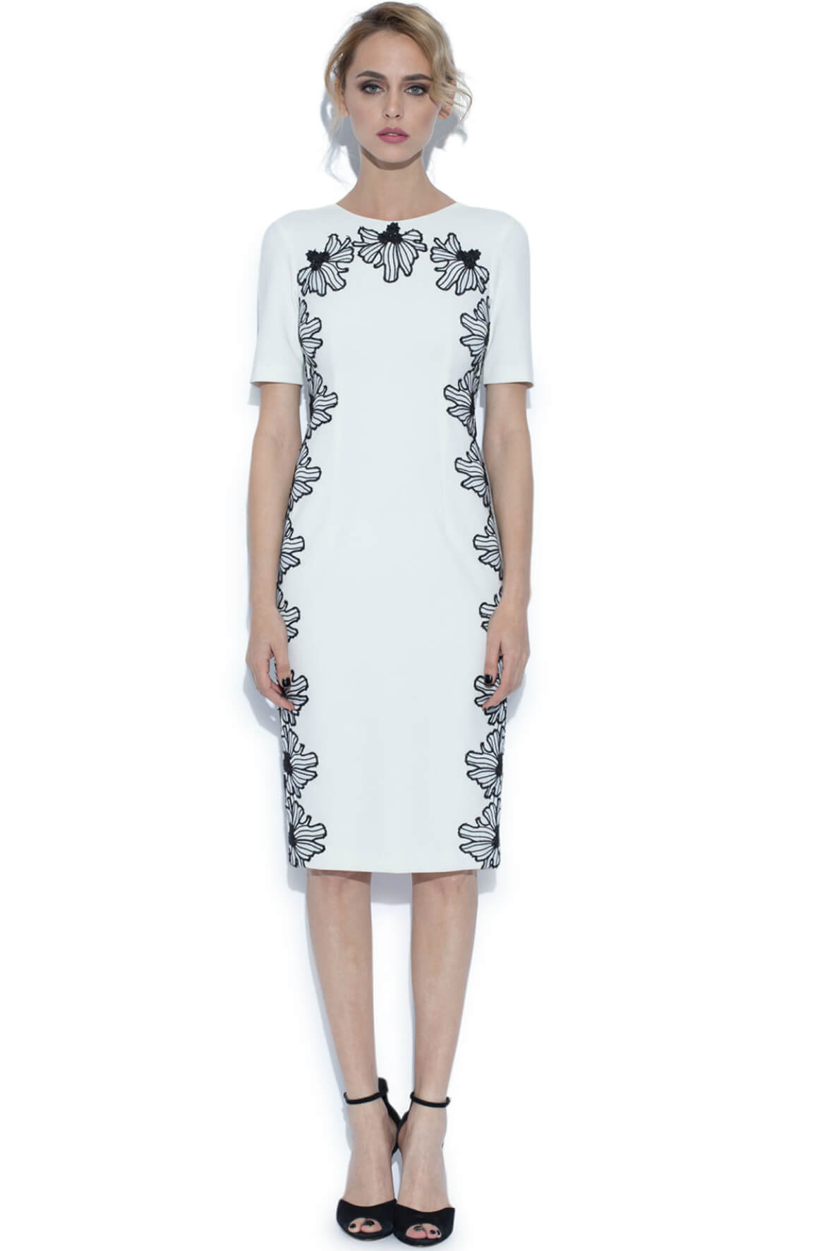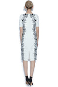White Lace Embroided Midi Dress. Nude undergarment is advised.