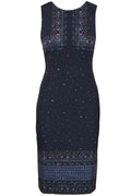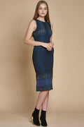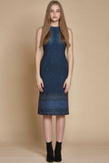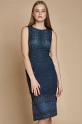 Add this wardrobe staple to transform your day to night look. This sleevless bodycon fitted dress features a square neckline and subtle prints. Dress down with a statement denim jacket and boots or sneakers.