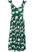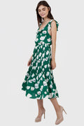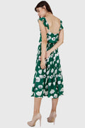 The Betsey Long Dress is a charming piece great to twirl around in it. Featuring a v-neckline, flutter shoulder straps and pleated detailing falling down from the waistline. Elastic at the back.