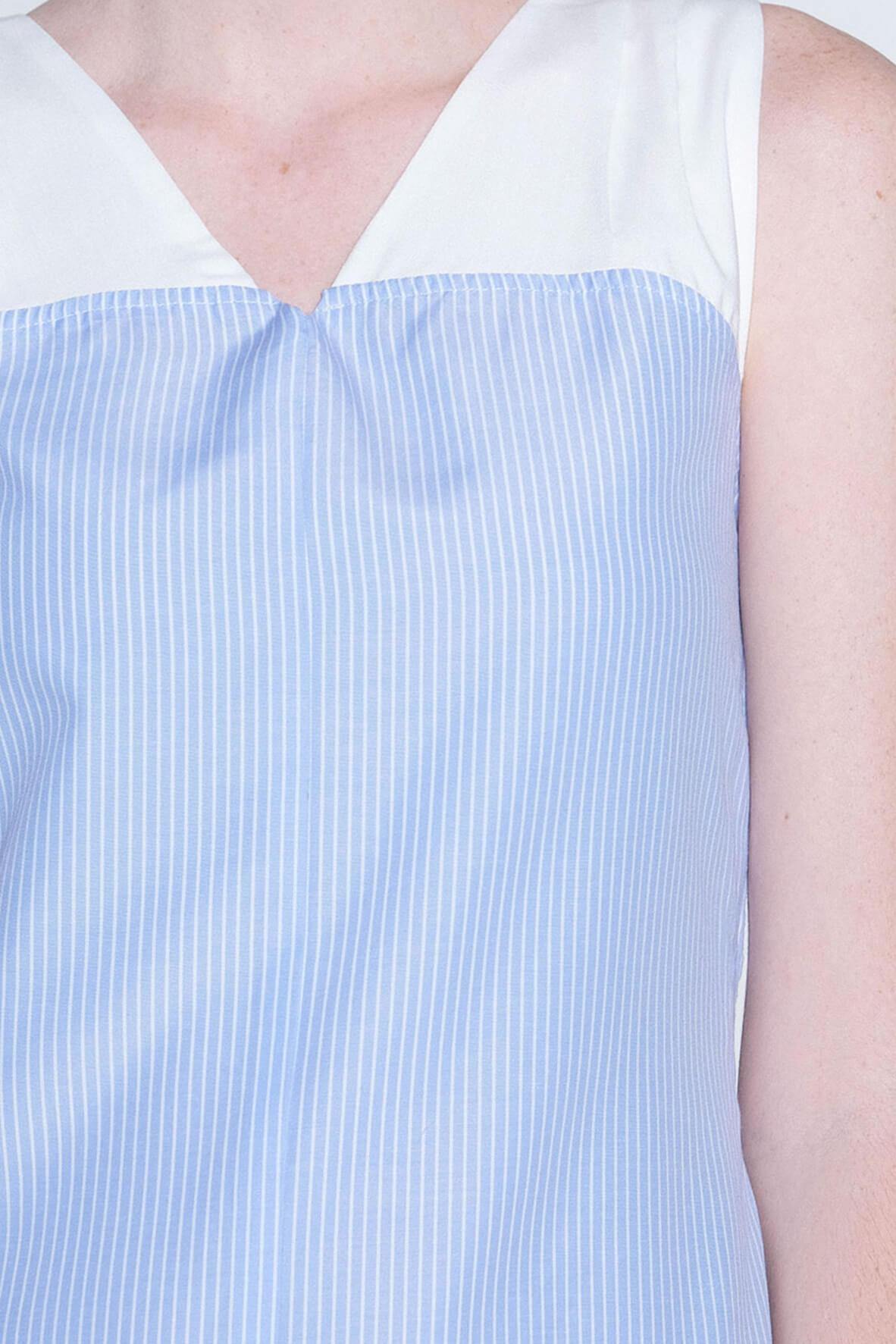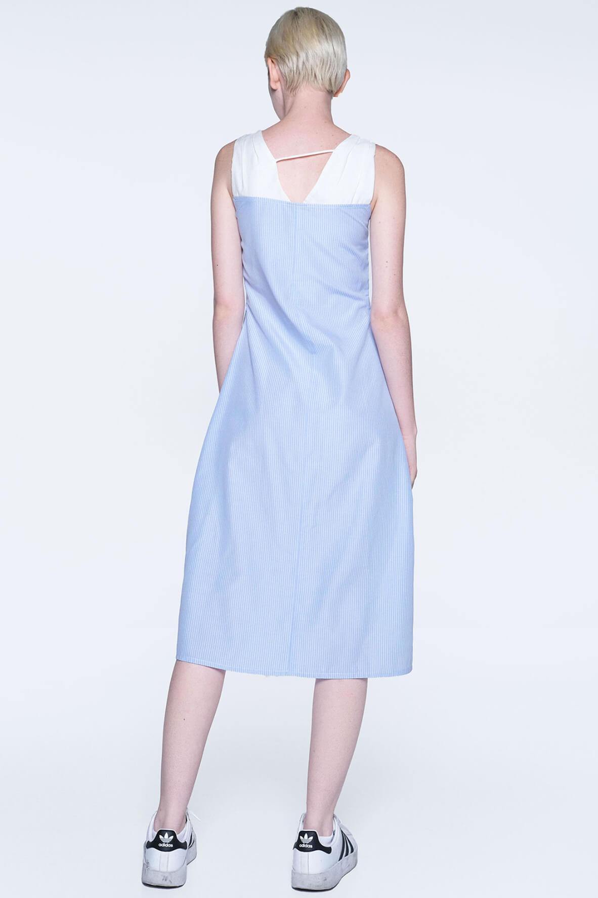 The Sawyer Dress is an ideal style for casual days with its comfortable and relaxed fit and simple pinstripe print. The dress is v-neck, sleeveless and has slits on the side along the hemline.