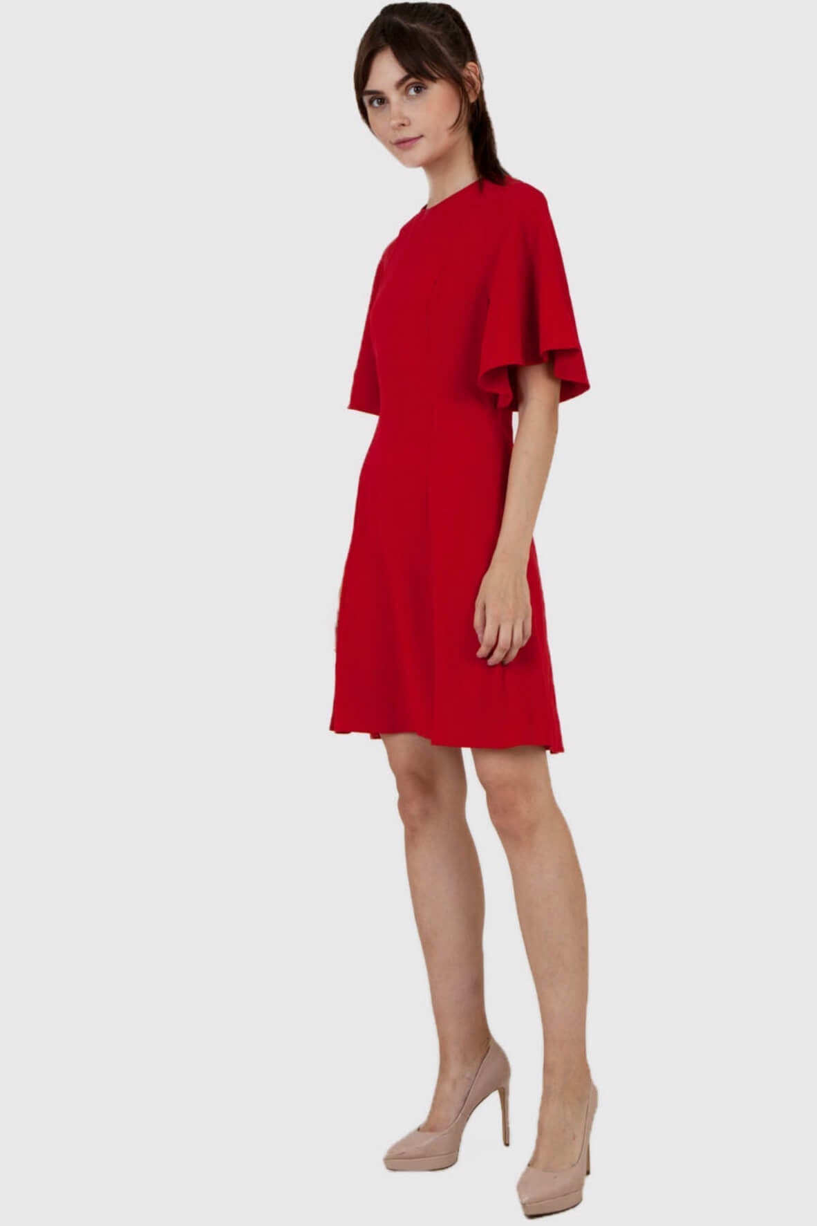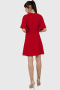 The Yoko Dress will be a great addition to your wardrobe. Designed for a slim fit, it features a round neck, wide elbow-length sleeves, princess seams, nipped waist. Concealed back zip closure.