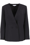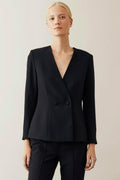 This grogeous blazer by Stylein is a twist to your regular blazers. It is a conventional black colour with no collars, Deep V neckline and two side by side button closure at front. Wear it as a blazer with your outfit or wear it as a topw ith black trousers to add a newness to the style.