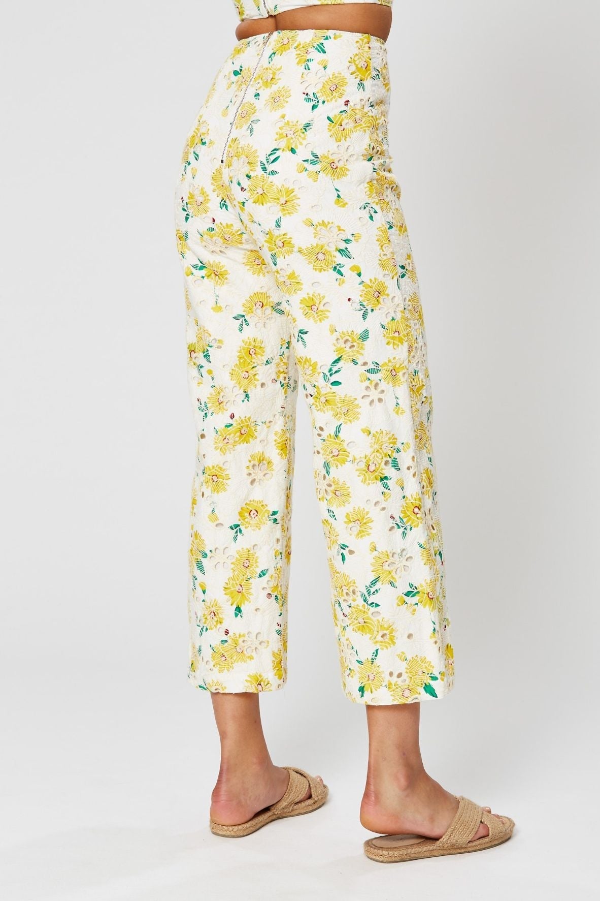 An irresistible printed lace available in an assortment of styles to set your desire alight. Features High waisted style with centre ring detail, crop length, slim fit. Finished in a layered embroidered lace print & Zip back closure.