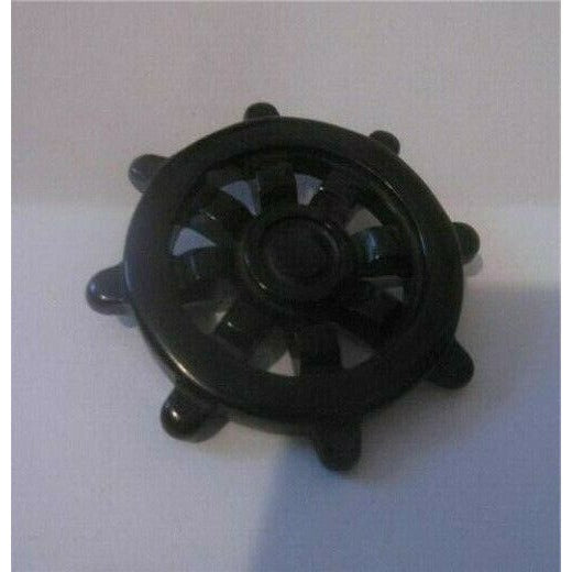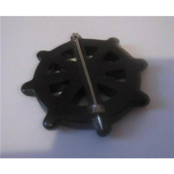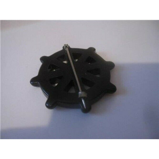 Art Deco Black Bakelite Nautical Boat Wheel Deeply Carved Pierced Brooch Pin