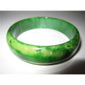 The bangle is a must have piece! It is a domed shape, bangle bracelet in a deeply, marbled, spinach green. A bangle in this color and style is something every vintage jewelry box should have in it! This is a classic piece that has made its way through about a hundred year and still looks great! Dimensions: .5" x .25" with a 2-5/8" opening. All measurements are approximate. LP*